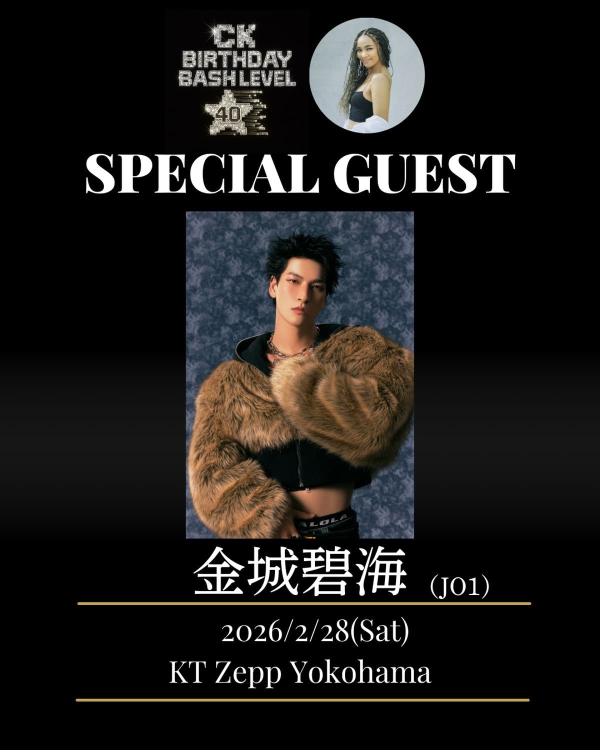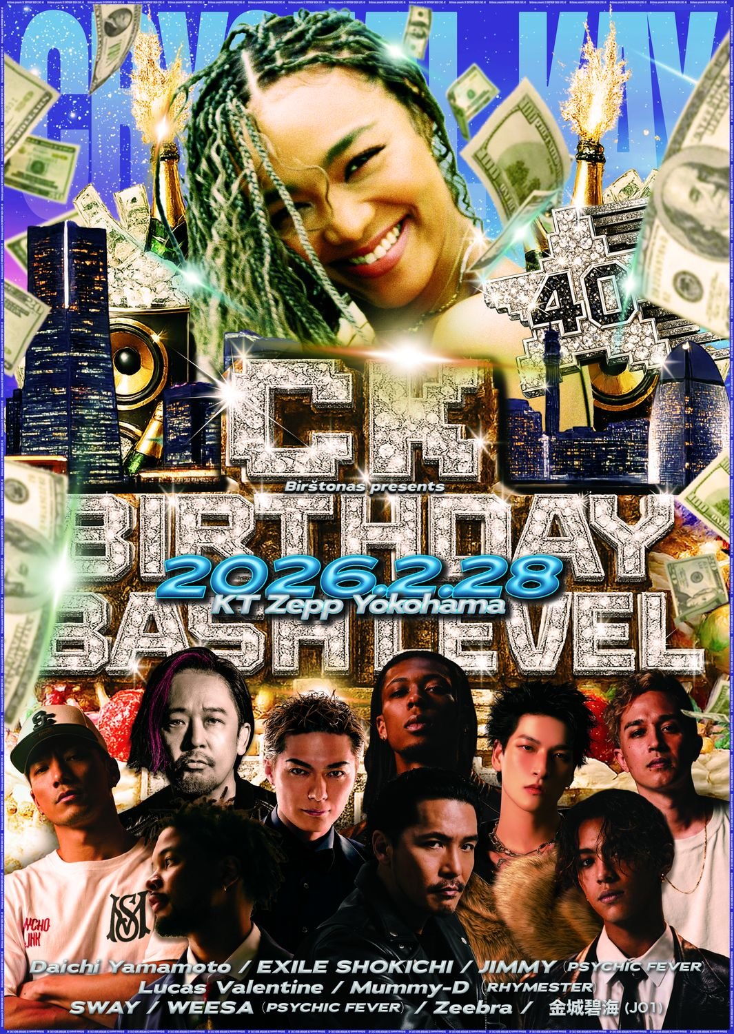 先日開催が発表された、2026年2月26日に生誕40周年を迎えるCrystal Kayが地元・横浜のKT Zepp Yokohamaにて豪華ゲストと共に行う誕生日パーティー『Birštonas presents CK BIRTHDAY BASH LEVEL 40』の第3弾ゲストが発表された。さらに、出演者のSWAYがデザインを手がけたフライヤーも解禁となった。