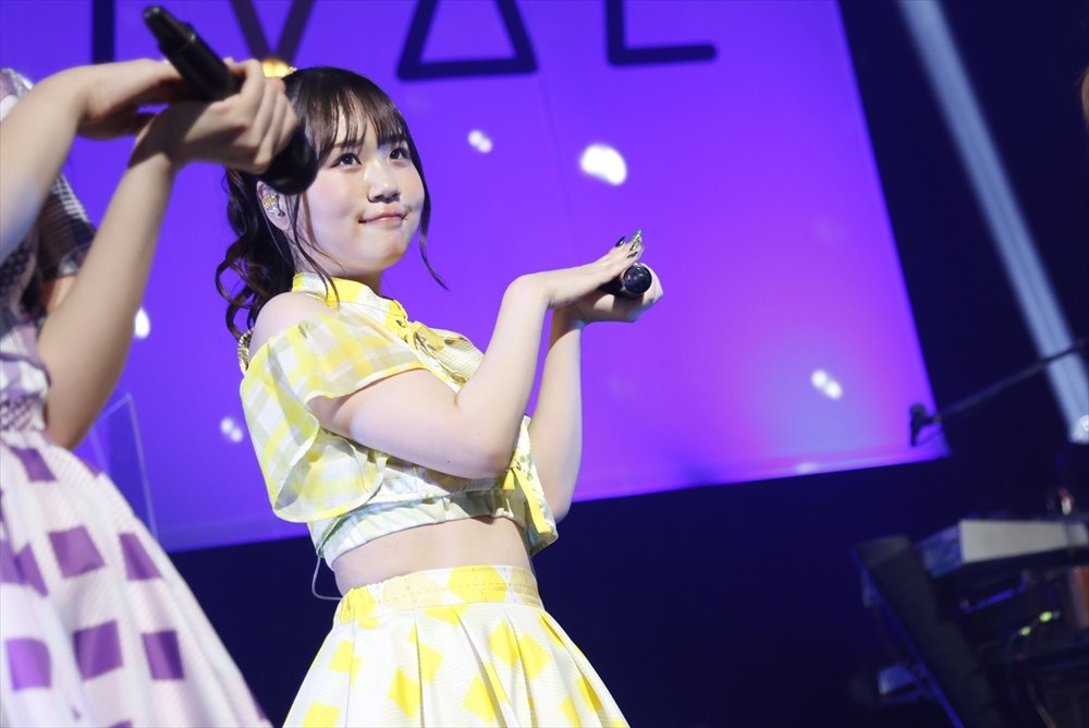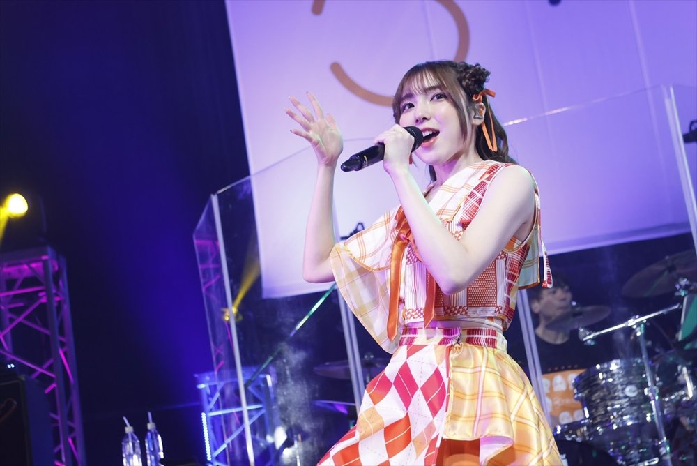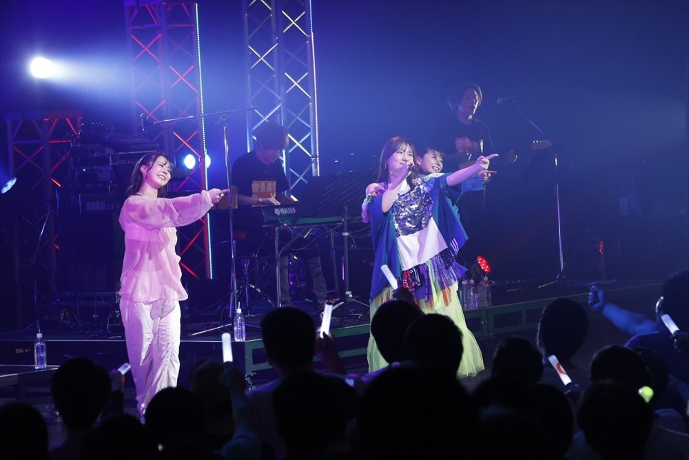 そして、3組のトップバッターとして紹介された立花日菜のブロックへと突入。勢いそのままに、激しく中毒性のあるロックナンバー「Unbalance Addiction」をP's Band(Bass:黒須克彦、Guitar:三沢崇篤、Drums:鈴木浩之、Keyboards:今井隼)の演奏で決めていく立花に、観客のテンションは一段と爆上がり。「まだまだ声出せますよね!」と煽り、「わたしクエスト」でも熱く楽しい空間を創出していった。