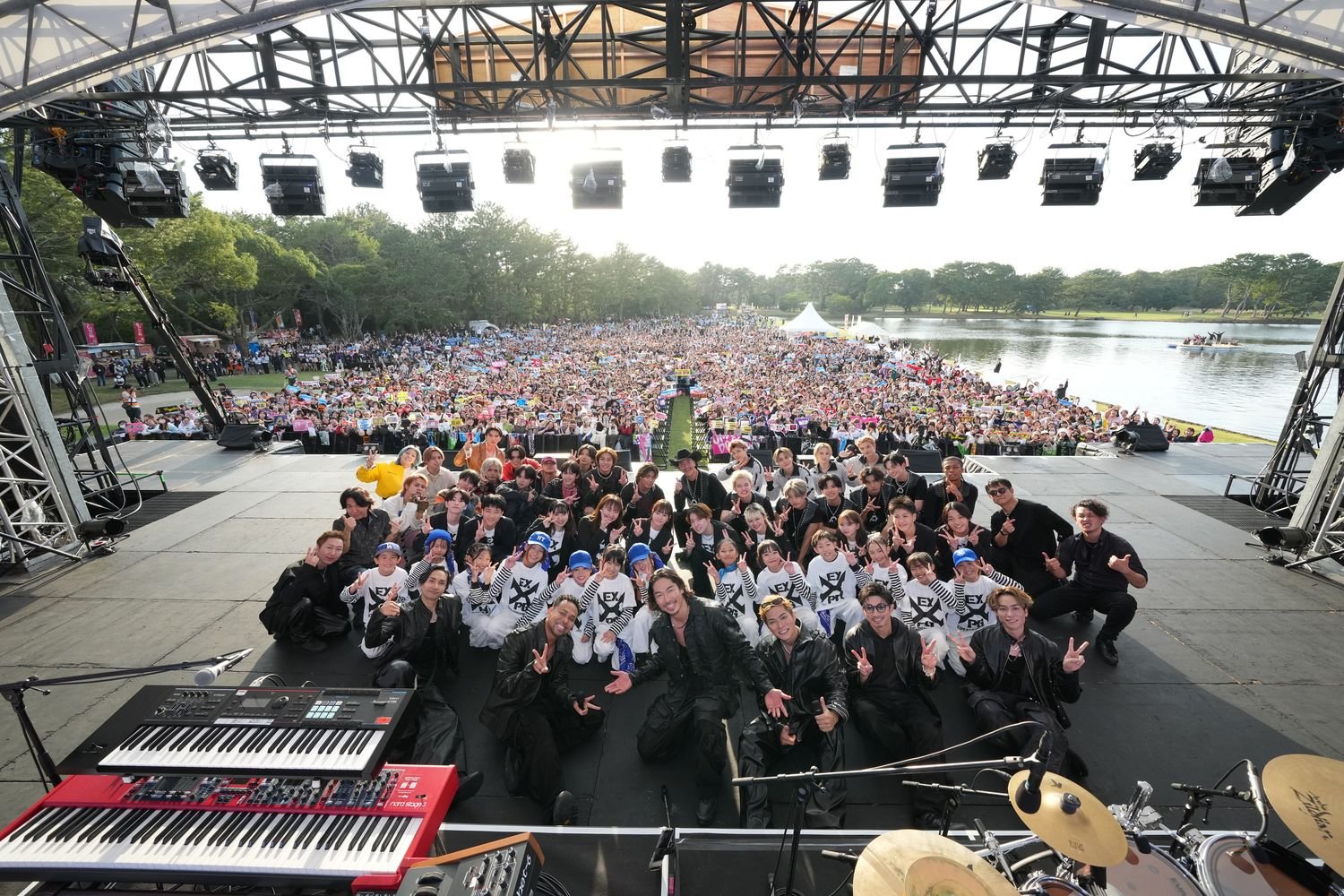 「まだまだ夢の途中です。旅の途中です。」というSHOKICHIの一言から始まった「On My Way」では、会場に集まったファンの美しい歌声が青空へと響き渡っていく。「Choo Choo TRAIN」にはMAKIDAI、PSYCHIC FEVERがステージに登場。全員が肩を組んで一つになる。「24WORLD」ではPSYCHIC FEVERのボーカルも歌唱に参加。「Going Crazy」にはLIL LEAGUE、KID PHENOMENON、WOLF HOWL HARMONYも集結した。