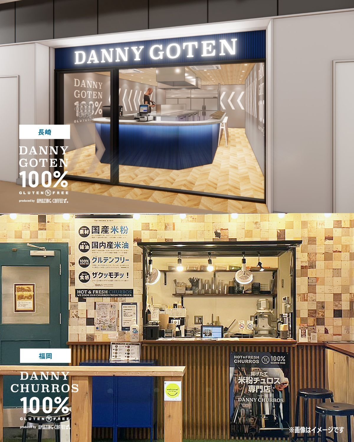 2月6日(金)に長崎スタジアムシティに「DANNY GOTEN produced by AMAZING COFFEE」、2月7日(土)に福岡ソラリアステージに「DANNY CHURROS produced by AMAZING COFFEE」を連日オープン予定。