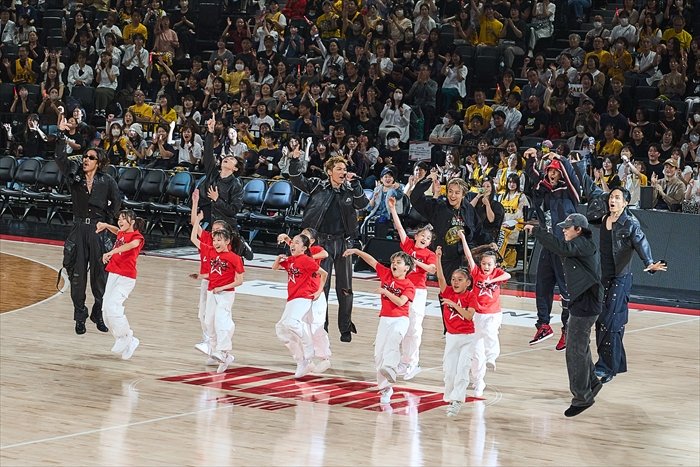 そして、再びEXILEが登場。日本中で愛されるEXILEの代表曲「Choo Choo TRAIN」のイントロが流れると歓声が上がり、冒頭の腕をくるくるとまわす振り付けでは会場のペンライトも一緒に動く。THE JET BOY BANGERZとキッズダンサーも加わり、コートは笑顔で溢れていた。TAKAHIROの「TOYOTA ARENA開幕を祝して、この曲を届けたいと思います」で始まったのは、ラスト曲「Rising Sun」。THE RAMPAGEも加わり、力強い圧巻のシンクロダンスを披露。TAKAHIROの「素敵な笑顔をたくさんありがとうございました!それではまた会いましょう!」でステージを締めくくった。