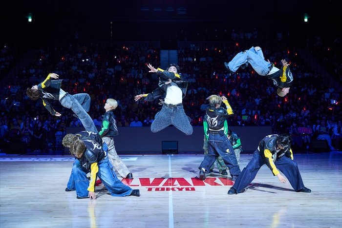 「まだまだ盛り上がっていきましょう!」と登場したのは、10人組グループTHE JET BOY BANGERZ。彼らのスキルを見せつけるデビューシングル「Jetten’」でパフォーマンスをスタート。クラップで会場を温めながら、縦一列横一列などとフォーメーションを細かく変えていく。ダンスブレイクではアクロバットを披露し、パフォーマー全員がダンスのプロリーグD.LEAGUEで活躍するDリーガーである強みを発揮した。YUHIの「まだまだいけますか!」の声で「BOYS -TJBB Anthem-」へ。円を作ったりメンバーが360度に散ったりと、観客と近い距離でパフォーマンスを繰り広げた。