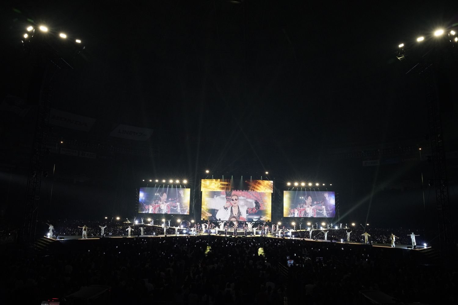 ライブ前の囲み取材で、AKIRAは「今日この日を迎えられて感無量。ファンの皆さんはもちろん、僕たち自身もこのメンバーでのこの景色を待ち望んでいました」と、しみじみ。そして「およそ20年もドームのステージに立ち続けられているってことは本当にすごいこと。自分たちで言うのもなんなんですけど、誇らしいことだなって思いました。そういったところも噛み締めながら(ドームツアーを)スタートできるのは本当に素晴らしいなと思いました。逆を言えば、(デビューしてから)約25年、僕らのライブに来てくださっているファンの方たちがすごい。感謝しかありません」