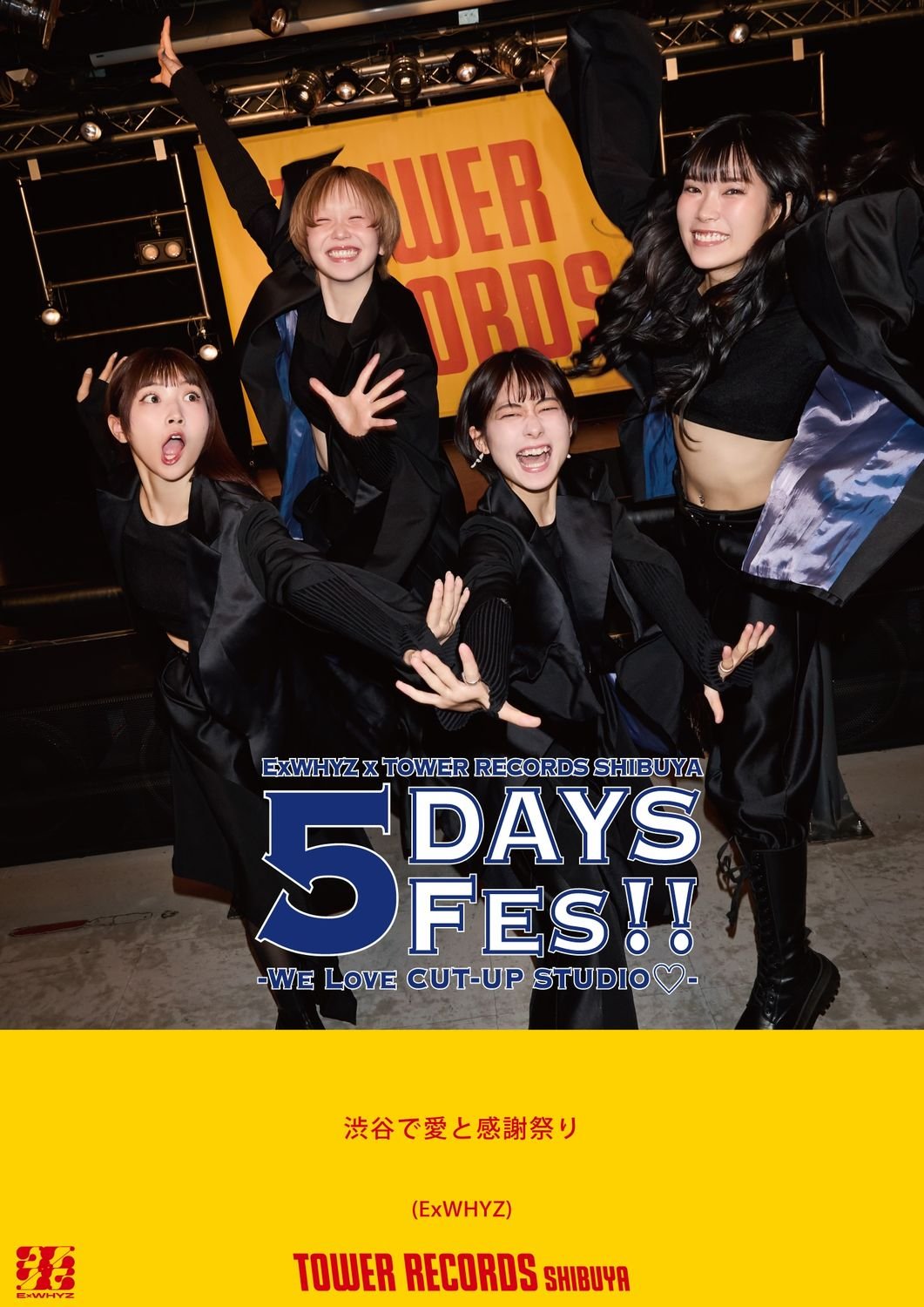 ExWHYZが、4月1日にリリースする3rdシングル「GIVE YOU MY WORD」の発売を記念して、タワーレコード渋谷店とタッグを組んだ、5日間のスペシャルフェス「ExWHYZ×TOWER RECORDS SHIBUYA 5DAYS FES!! -We Love CUT-UP STUDIO♡-」を開催することを発表した。