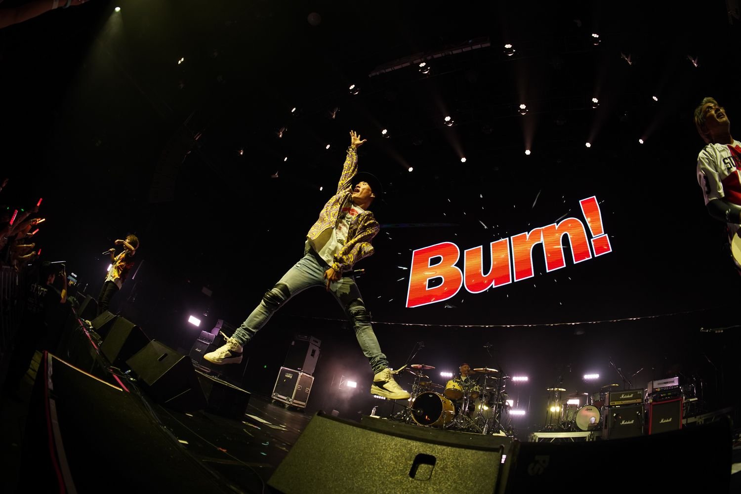 DAY1に続きトップバッターはBLUE ENCOUNT。青いペンライトの光が揺れるフロアからの大歓声に迎えられると、伸びやかなメロディが琴線に触れるアニメ『BANANA FISH』のOP「FREEDOM」の大合唱で幕を開けると、「DAY×DAY」ではクラップが響いた。1年前の中国でのライブで約束した再会をこのフェスで果たせたと話す田邊駿一に、上海の観客も歓声で応え、その歓声に続けて謳うようなベースが印象的な「Survivor」、さらに2本のギターが絡み合い疾走する「VS」とBLUE ENCOUNTらしさを詰め込んだナンバーで畳みかける。フロアとステージの熱気の応酬のようなライブは、軽快なギターリフとリズミックなビートとでグルーヴ感たっぷりに鳴らされた「バッドパラドックス」から、そのまま「ポラリス」へと突入。想いを込めた歌を、高く挙げられた手によるクラップが迎える。アニメが、音楽が好きな人が集う会場に向け「俺たちはアニメのOPやEDを歌って、みんなの好きなものの一部になれていることを誇りに思う」と言う田邊の言葉に温かな拍手が沸いた。「また絶対に帰ってくる」と約束をすると鋭い刃のようなギターのイントロが印象的な「BLADE」、そしてアニメ『あひるの空』のOP「ハミングバード」のハートフルで力強さあるロックンロールが響き、BLUE ENCOUNTの音楽は最後の瞬間まで会場を熱くしたのだった。