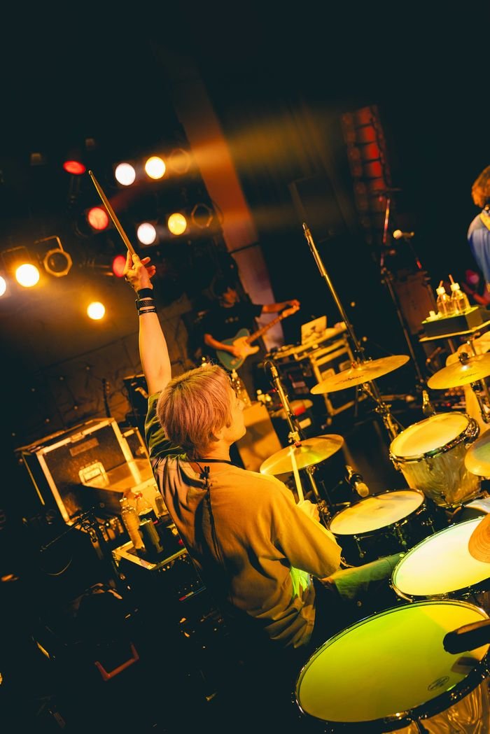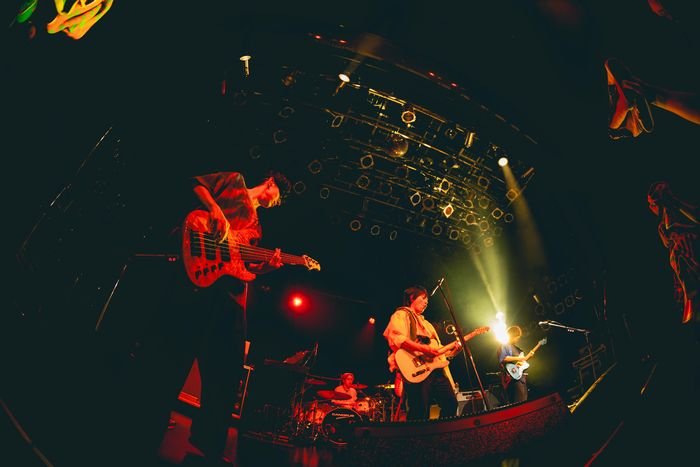 開演を待つ間、場内に流れていたのは『FM SAKAI』の音声。山村隆太(Vo)と阪井一生(Gt)が中学時代に自宅で制作していた幻のラジオ番組を原点とし、特典企画などでお馴染みだったトークプログラムが久しぶりに復活したのだ。アットホームな雰囲気で開演前からファンをもてなそう、というホスピタリティが伝わる演出だった。阪井がパーソナリティーを務めツアー中代わる代わるメンバーが出演してきたが、この日のゲストは山村。トークが終わると、背後でうっすらと響いていた水音が次第に大きくなり、いよいよ開演の時が来た。