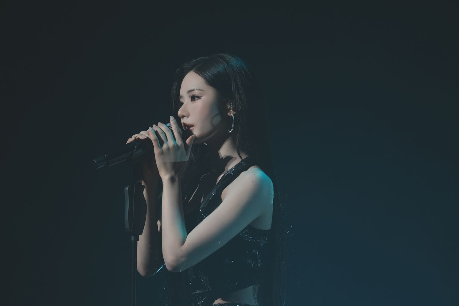 ジャズをBGMに、ブラックドレスを着たメンバーたちがモノクロで映し出される大人びたVCRに続いてメンバーのソロステージセクションへ。ヒール音と美脚を映し出す映像に続いて最初に登場したのは、チェヨン。登場し披露したのは「Pretender」(Official髭男dism)。昨年9月の公演とは異なり、「初めて日本語の歌ってみました」というパフォーマンスは、街の夜景を見下ろす映像をバックに透明感と深みを湛える伸びやかな歌声で歌い上げ、会場からは大きな拍手と歓声が上がった。ダンスホールの映像を背景にジホンは、「真夜中のドア?Stay With Me」(松原みき)を披露。黒のロンググローブをはめた手に持つ有線マイクのシールドを捌く所作すらも楽曲の世界観を表現するようなきめ細やなパフォーマンスで、会場を70年代へと連れ出したのだった。