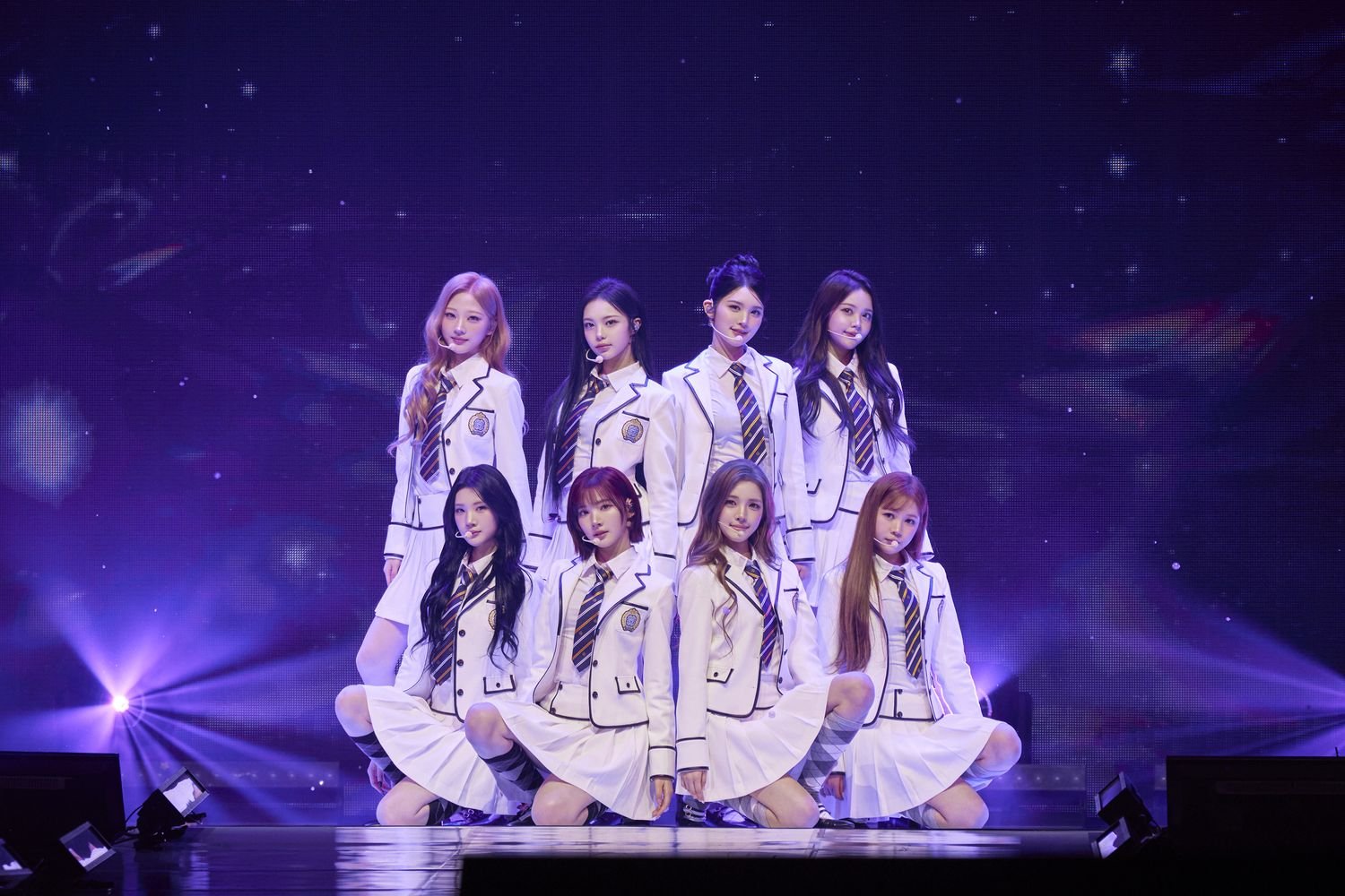 イベントはライブパートからスタート。真っ白な制服風の衣装で登場したジウ、カルメン、ユハ、ステラ、ジューン、エイナ、イアン、イェオンの8人は、1曲目にデビュー曲の「The Chase」を披露。夢に向かって一歩を踏み出す心境を幻想的なサウンドに乗せて表現した楽曲で、彼女たちのはつらつとした魅力が光る。続く、ノスタルジックな雰囲気も漂う「Pretty Please」では、透明感のあるボーカルも聴かせつつ、キュートなダンスでS2Uの視線を奪った。