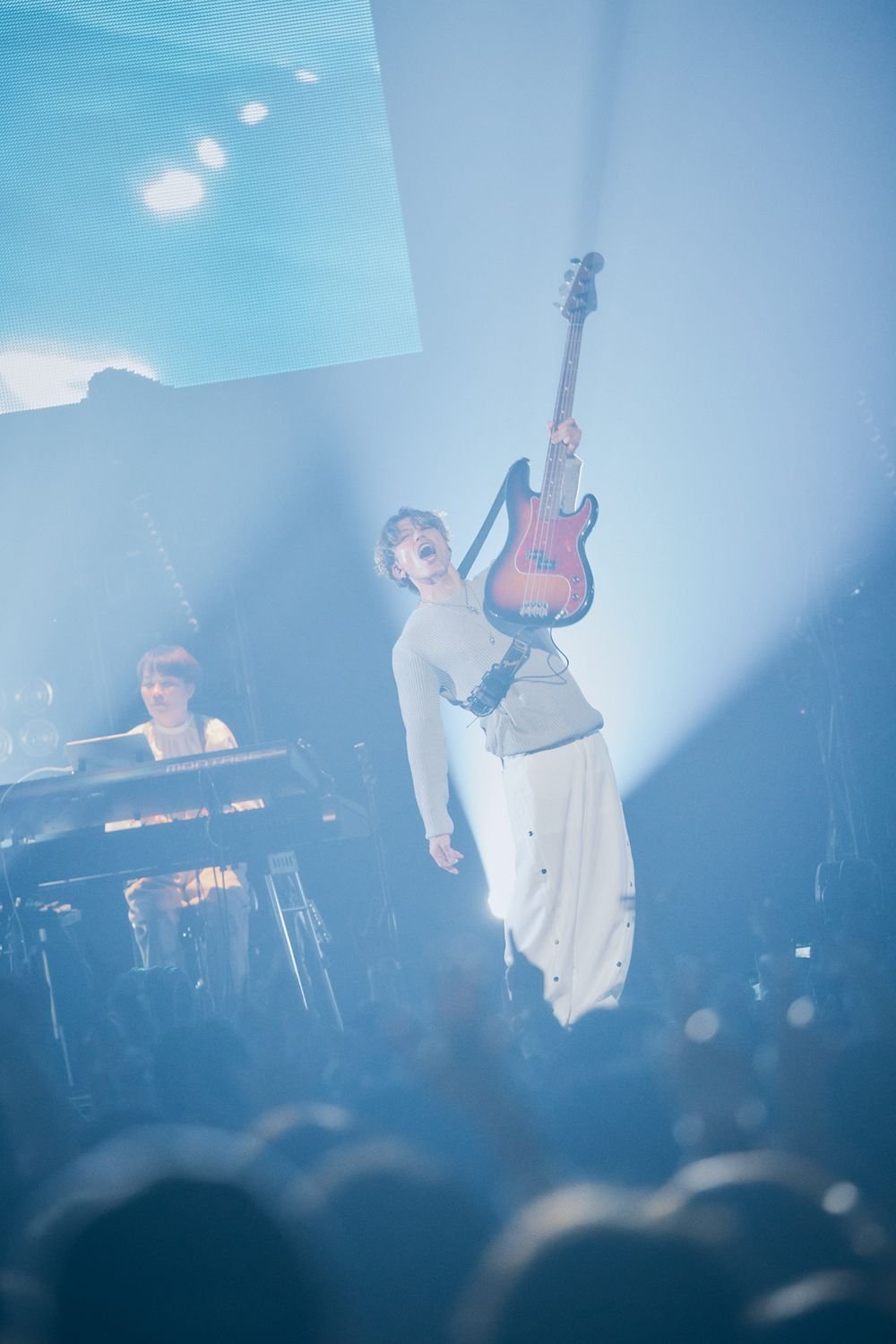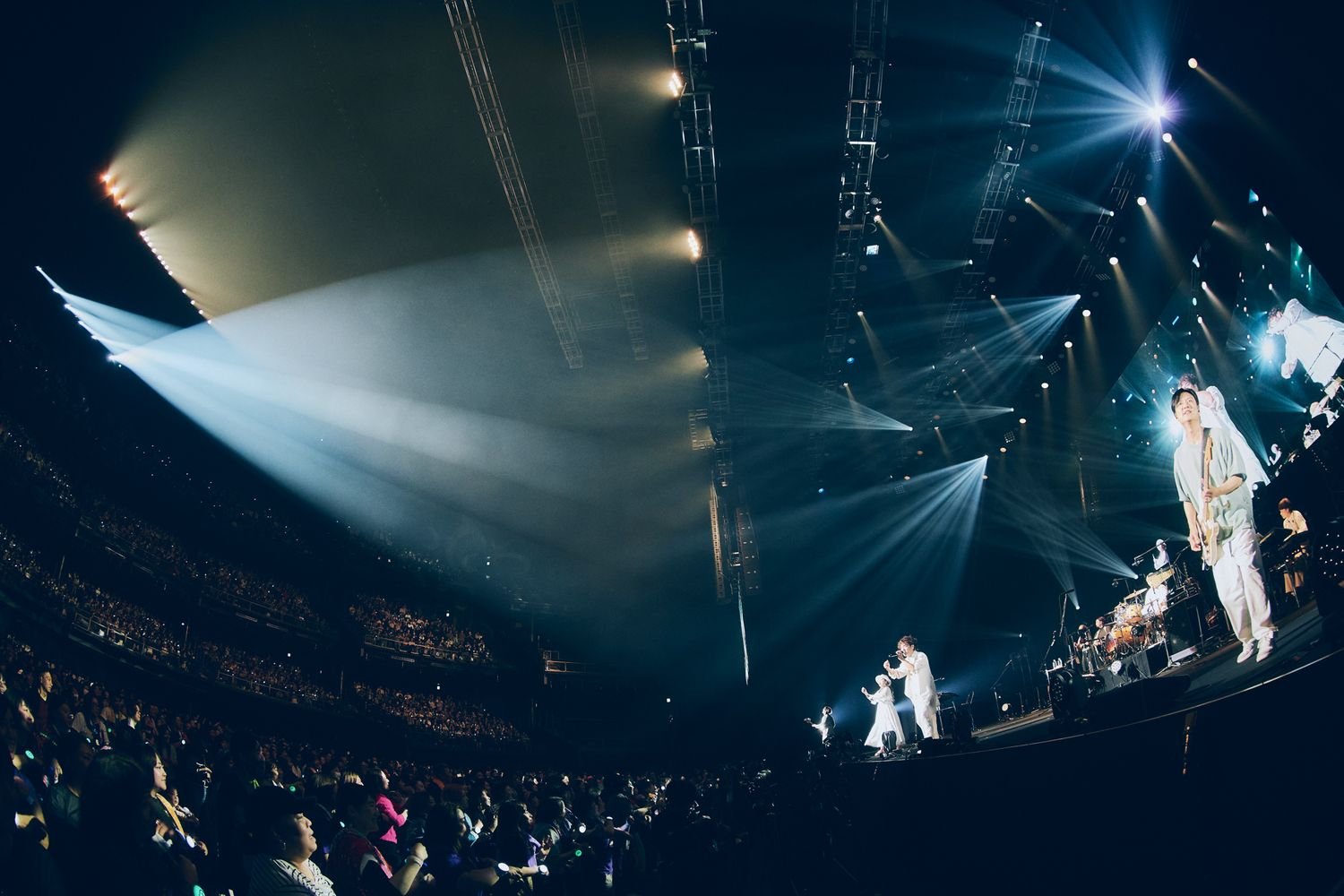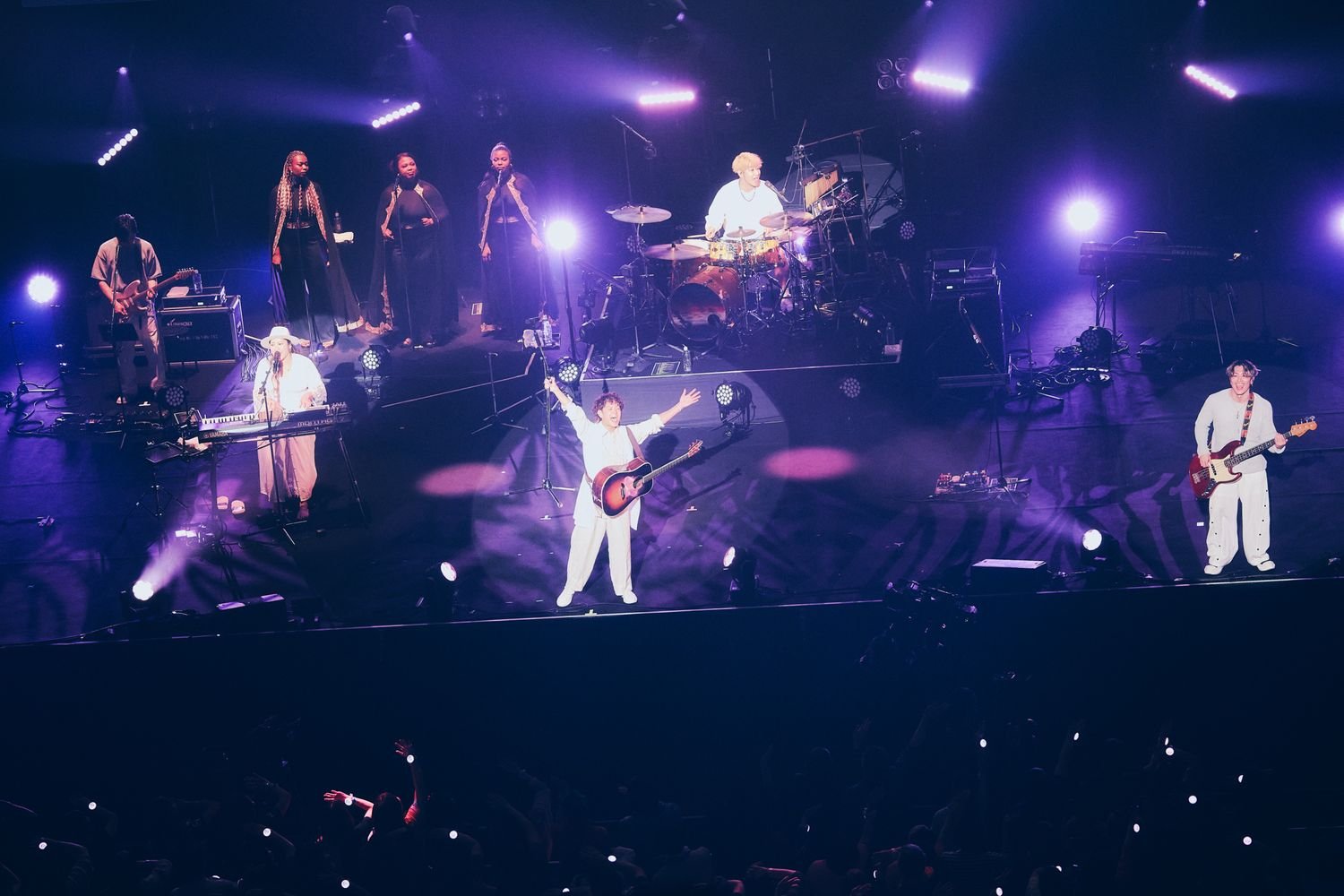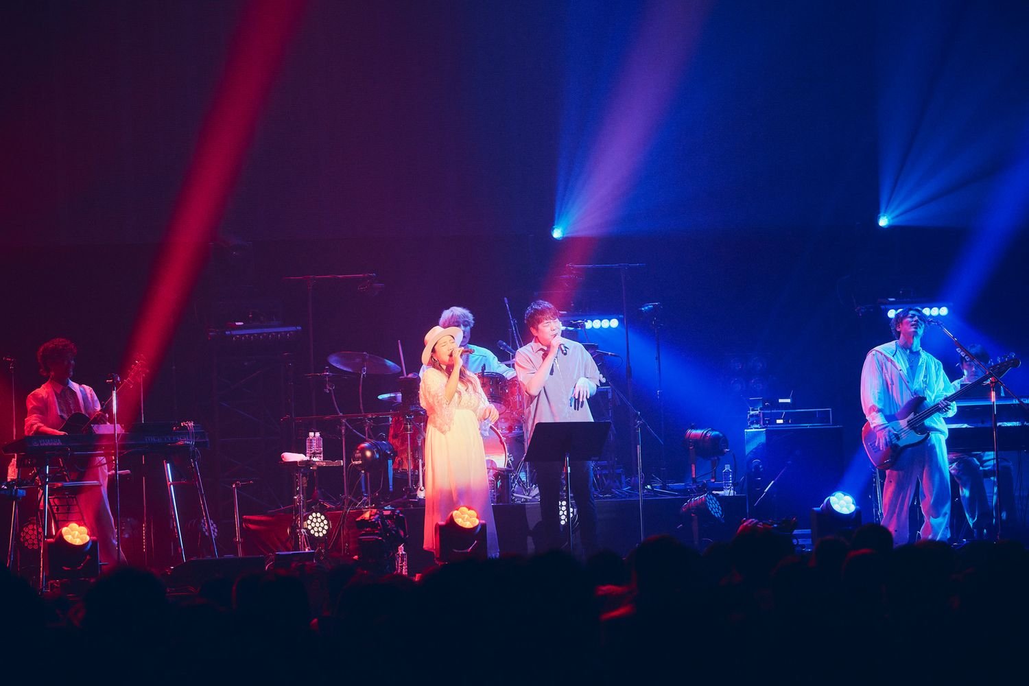 新里が「25周年を迎えられたのは皆さんのおかげです! HYの過去を届けて皆さんに未来を届けます!」と宣言。最初のゲストはスキマスイッチの大橋卓弥だ。仲宗根が「HYのライブにゲストを呼ぶことはないじゃないですか」と言うと、メンバー4人が大橋が現れるはずの袖に向かって横一列になって待ち構える。大橋は「出辛いよ!」と突っ込みながら登場。披露したのは「366日(Official Duet ver.)」だ。美しい鍵盤の旋律の中、仲宗根のしっとりした歌と大橋のマイルドな歌が重なった時の美しさは思わず息をのむほど。この上ないハーモニーに微笑み合うふたり。小指と拳を合わせた後、大橋は仲宗根をハグし、「この後も楽しんでください!」と言って颯爽とステージを後にした。