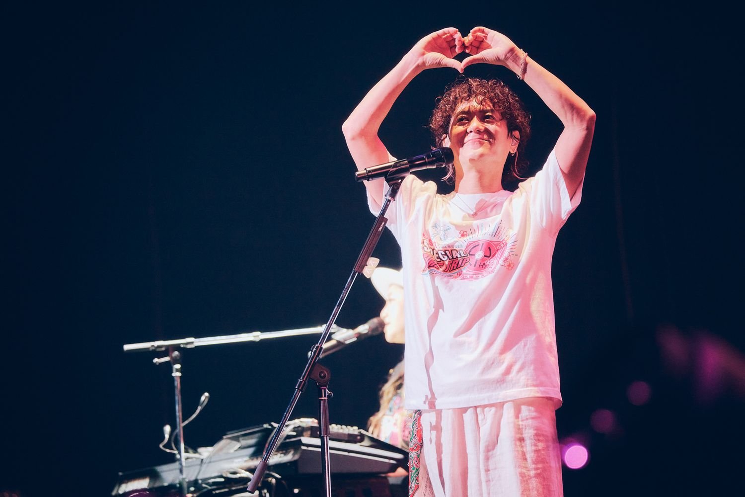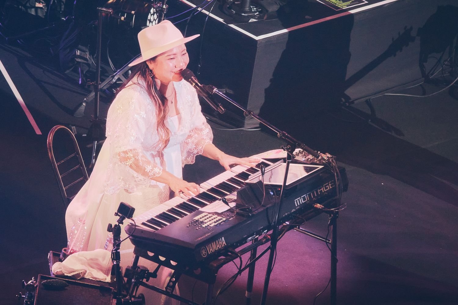 わずかな鍵盤の音とオーディエンスの歌声だけが響いた「NAO」、ドリームシスターズと一緒にレコーディングした思い出の曲「Beautiful」、新里が「あなたの人生に次の曲を当てはめてください」と言って披露された「恋をして」、スカのリズムが取り入れられたノリの良いサウンドにステージも客席も踊った「隆福丸」、イントロで銀テープが舞った「きのこいぬ」……数々の名曲が惜しみなく披露され、祝祭感を高めていった。