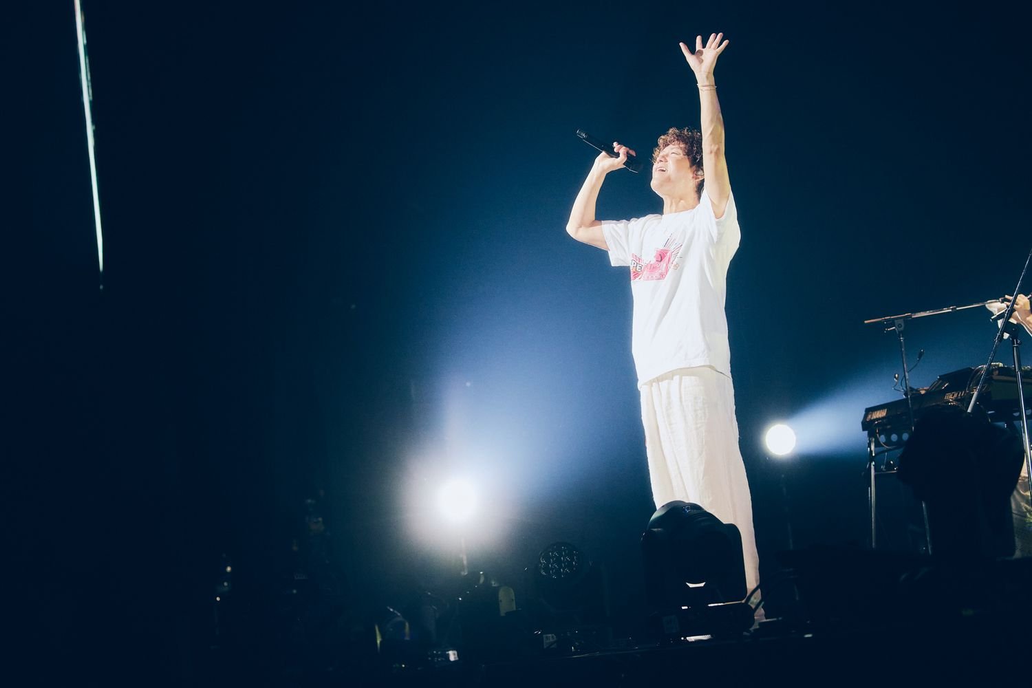 新里が「思いっきり手を伸ばして! 僕たちはこの歌からスタートしました! 感謝の気持ちを受け止めてね!」と言って演奏されたのは初のオリジナル曲であり、デビューのきっかけとなった「ホワイトビーチ」だ。メンバーもオーディエンスも楽しそうに腕を左右に振った。仲宗根がステージ中央で歌う中、新里がアリーナエリアに降りて行き、最前列のオーディエンスの手をタッチ。サビではオーディエンスが一斉にジャンプした。本編ラストは「AM11:00」。特大のシンガロングが生まれ、新里が「これからもHYはあなたの願いが叶いますようにって応援してるからね!」と言って本編が終了した。