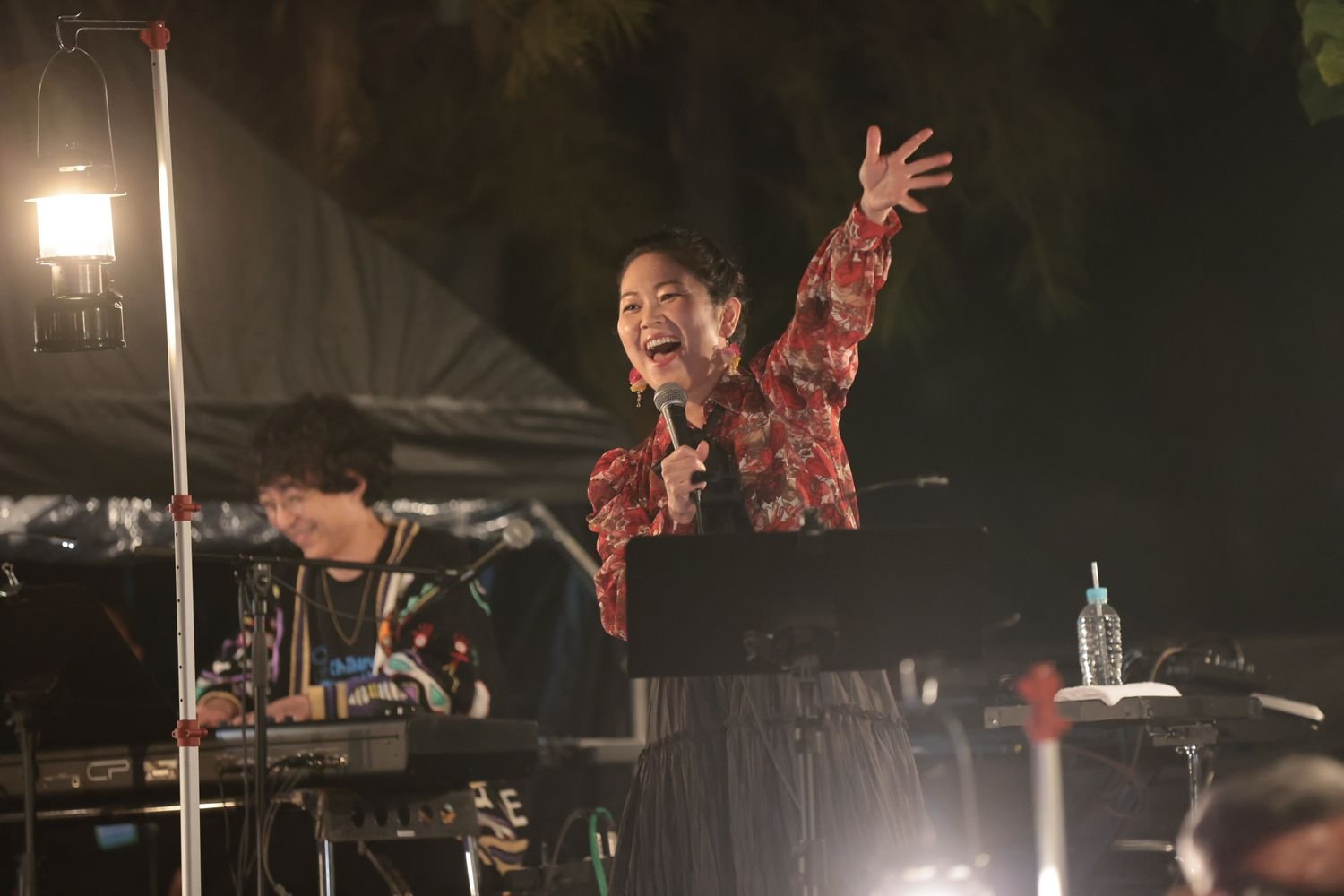 ふたりの圧倒的な歌声が、湿り気を帯びはじめた沖縄の空にどこまでも伸びていく。さっきまで跳ねていた観客が、まるで魔法をかけられたように立ち尽くし、ただその一音一音を噛みしめる。美しいハーモニーに包まれる時間は、まさに至福のひとときだった。