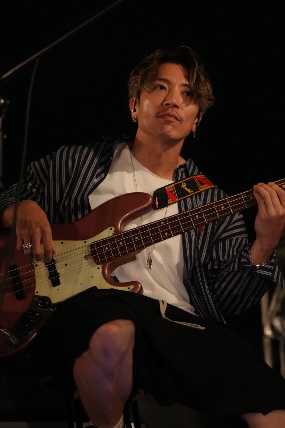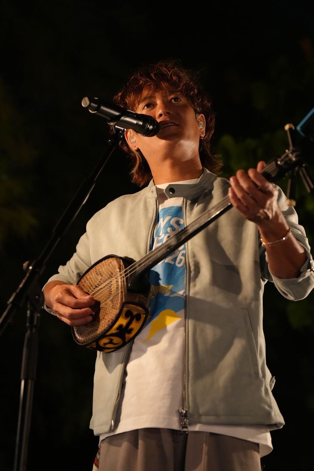 幕開けは「LOVE」。会場全体を大きな愛で包み込むようなプロローグから、夜の特別な時間は加速していく。「三月の陽炎」では、三線の切なくも温かな音色が夜空に溶け込み、仲宗根の慈愛に満ちた歌声が聴く者の心に深く染み渡っていく。また、アコースティック編成で奏でられた「恋をして」は、普段のステージとはひと味もふた味も違う繊細な響きを放ち、観客は一音たりとも聞き逃すまいとステージに釘付けになった。