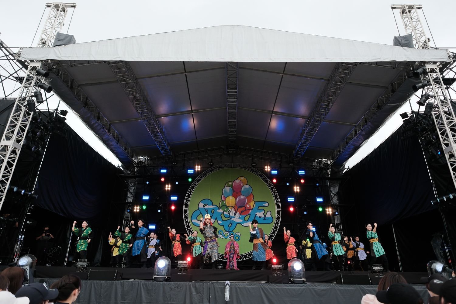 クライマックスでは、巨大なサークルになって見ず知らずの人同士が肩を組んで回る「踊LOCCA~around the world 新たなる冒険~」の名物が、ここSKY Fesでも実現!スタンディングエリアがひとつとなってぐるぐると駆け回り、会場中が数えきれないほどの笑顔に包まれた。
