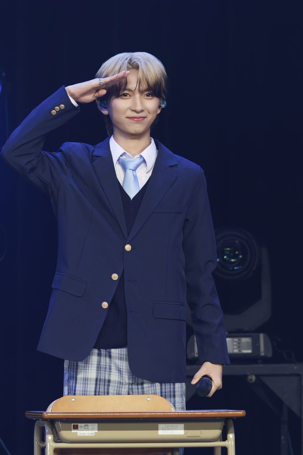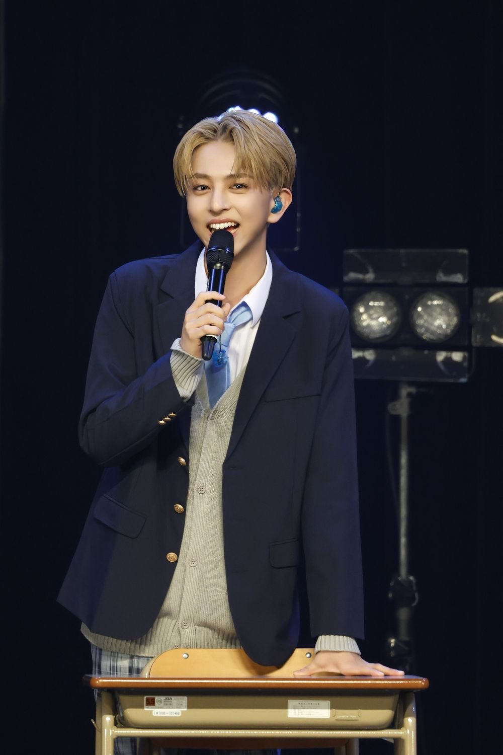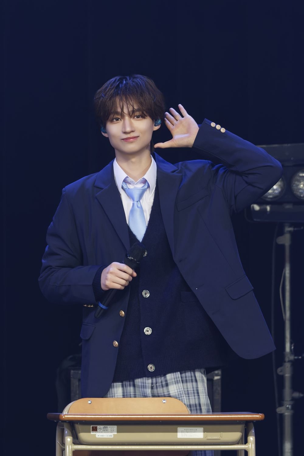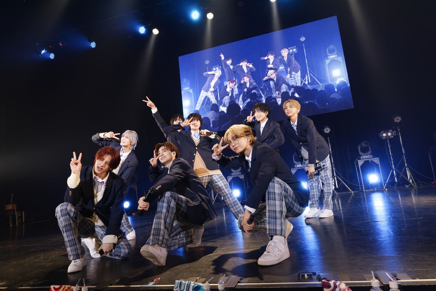 開演時間となり、場内が暗転すると、フロアには学校のチャイムが鳴り響いた。続いて、教室のように机と椅子が横一列に並べられたステージにブレーザーにチェックパンツという制服姿のメンバーが登場すると、満員の観客からの歓声が上がった。MCを務める中村の号令を合図にメンバーは着席。“ICEx After School”と題したイベントは、学校を舞台にストーリー仕立てのライブを展開した"ICEx School"をメンバーとともに振り返る<トークコーナー>からスタートした。