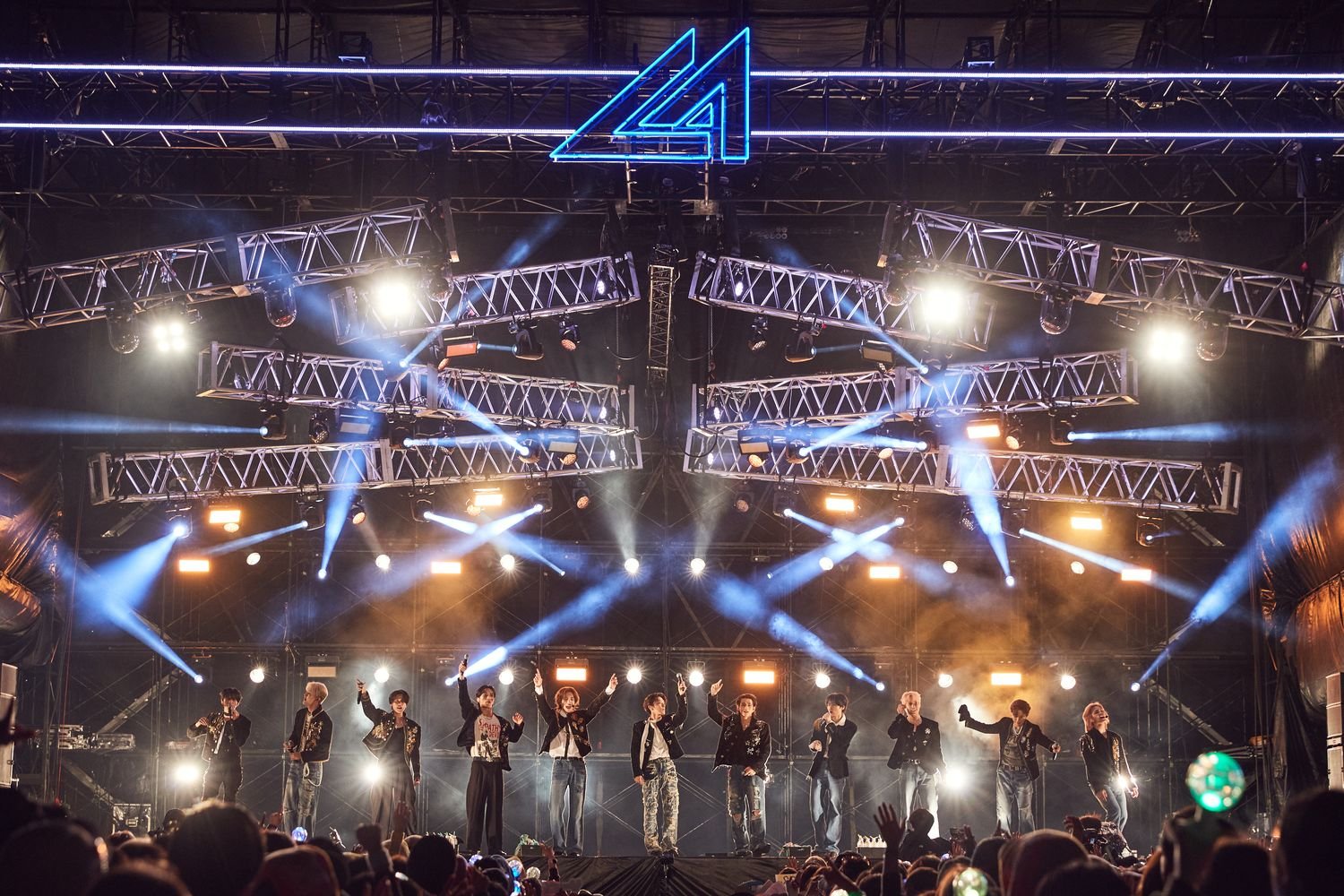 池﨑がAZUMA ”コールや INI ”コールで会場を一つにし、その勢いのまま「 Party Goes On 」へ。フェスならではの熱量で会場全体を巻き込むと、 4TH SINGLE 収録曲「 INItialize 」、最新アルバムから「 What A Night 」と幅広いジャンルの楽曲で INI らしいステージを繰り広げ、会場の空気を INI 色に 染めていきました 。