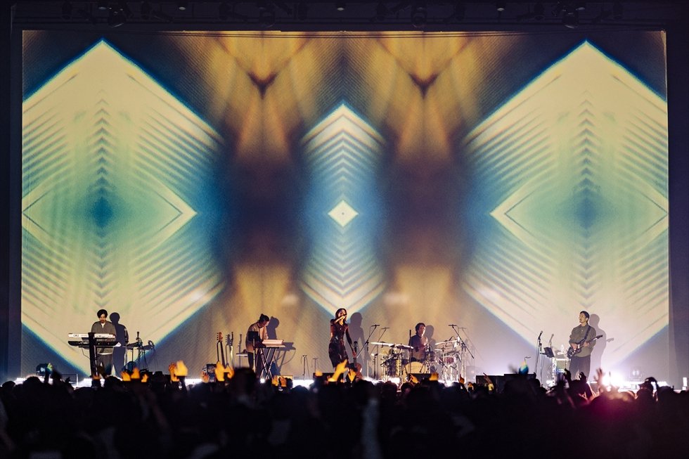 「もともと、人前に立ったり、何か話したり、伝えたりするのが苦手な人間なので、自分は音楽が向いてないんじゃないかと思う瞬間がこの10年で幾度となくあったんですけど、みんなが変わらず、こうやってライブを見に来てくださって、音楽を続けられていることがとても幸せです」。そう感謝の念が伝えられたオーディエンスがコーラスを重ねた「Wonderland」をはじめ、メッセージが込められた「Only One」やファンクロックチューン「Swamp」から伝わってくる歌声の強くしなやかな響きはファンの存在を糧に、この10年で遂げた成長の証でもある。そして、「はずでした」から「渦」、「Watashi」、「Shade」と続いたメドレーしかり、台湾で撮影されたMVをバックに歌われた「Shade」しかり、ヒップホップやダンスミュージック由来のビートに負けない歌声があるからこそ、そのタフさは聴き手の心を揺さぶるのだろう。