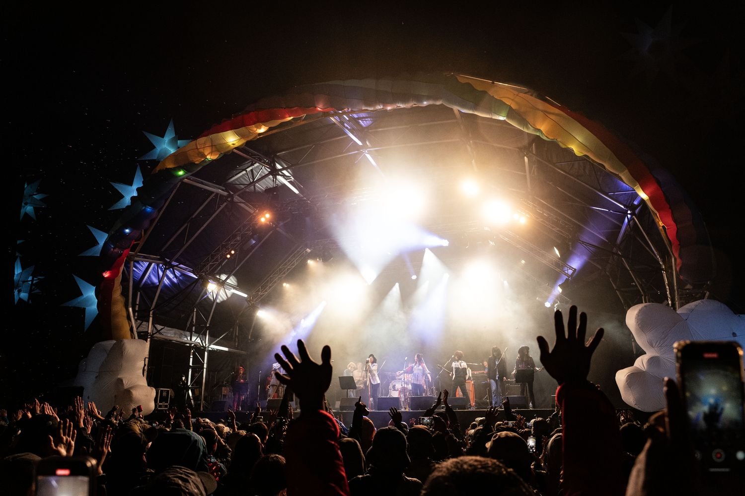 そしてファイナルは出演者全員による「雨あがりの夜空に」!日本のロックンロール・スタンダードの代表曲。年令や国籍も関係なく、お客さんも出演者もスタッフもみんな楽しそうに歌ったり踊ったり、この曲ほどフェスに似合う曲はないだろう。