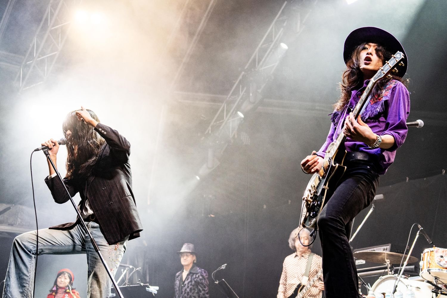 いよいよ大トリの中の大トリ 今年結成40周年を迎えたRED WARRIORSのリード・シンガー ダイヤモンド☆ユカイが、暴動クラブのギタリスト マツシマライズを引き連れて登場!曲は清志郎のライブのクライマックス・ナンバー「ドカドカうるさいR&Rバンド」。ライズの入魂のリフがオーディエンスのハートに火をつけた。ステージ狭しと動き回るダイヤモンド☆ユカイは天性のロックンロールスターで、チャーミングでポップなところが清志郎と重なる。ユカイのマイクスタンドが宙を舞い、ライズが美しくもワイルドにギターを決め、ステージ中央で一つのマイクスタンドで歌う見事なライブパフォーマンス!まるでサーカスのようなロックンロールショーで、朝霧JAMに現代最高のロックンロールを刻印した。