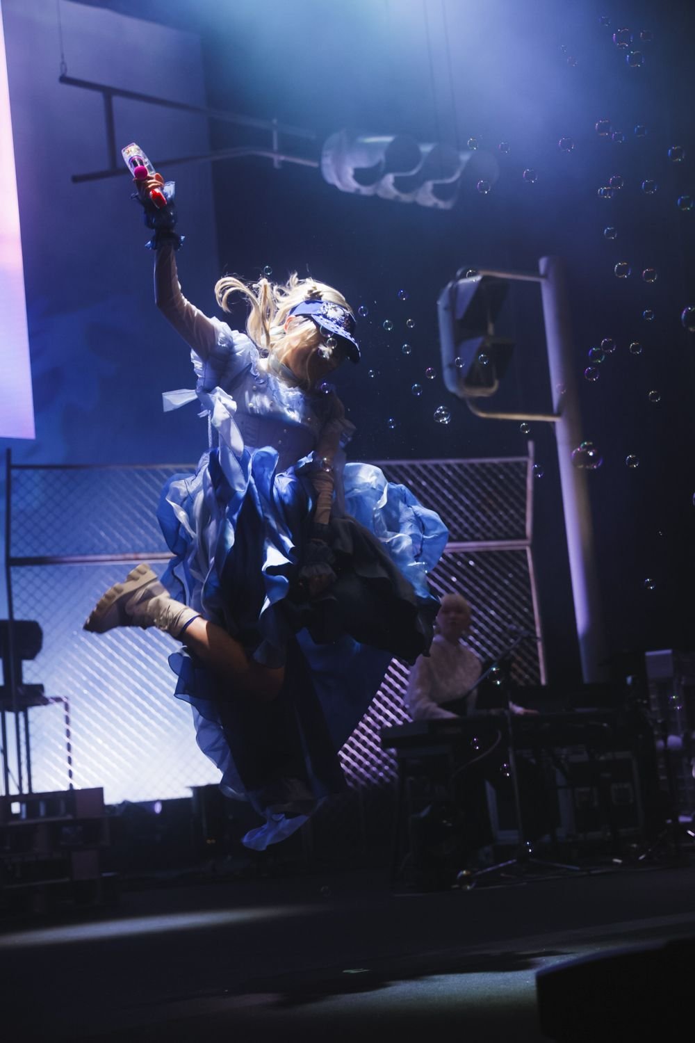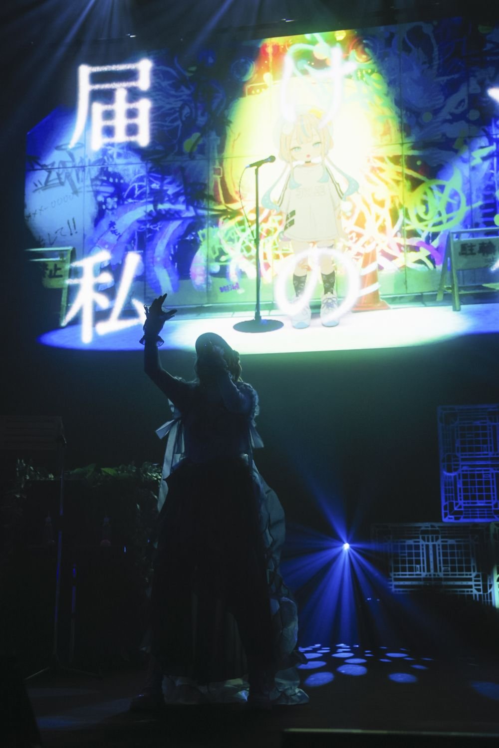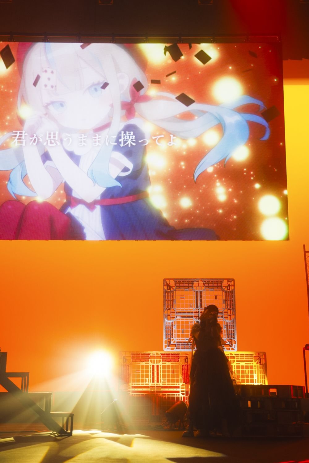 MCで改めて挨拶し、「みんなをもっともっと笑顔にしたいと思います!」と宣言した彼女は、JELEE初のタイアップ曲となった漫画『神楽がゆく!』のイメージソング「笑顔のおかわり」を届ける。本公演ではJELEEの顔に照明が当たらないようになっていたため、表情がはっきりとわかるわけではないが、その明るく快活な歌声から彼女もまた笑顔になっていることが伝わってくる。「渋谷アクアリウム」では、スクリーンにヨルの美麗なイラストをフィーチャーしたMVがステージに鮮やかな色どりを加えていた。
