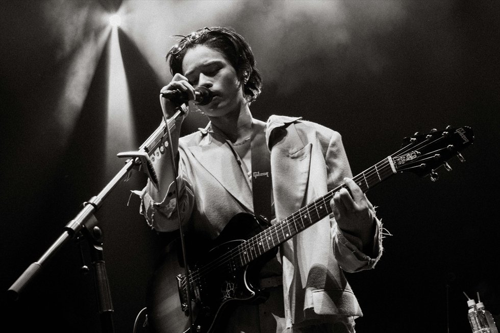 “駄叉”でjo0jiが紡ぐ魂のメロディとバンドによる壮大な音でZepp Shinjukuを包み込んだあと、空気を一変させたのは“BAE”。この曲は、jo0jiが楽曲制作で悩んだとき、心のブレを正すために書いたものだ。自分の中にある二面性をサウンドで表現し、自分の行動が不特定多数の人に影響を及ぼすことに戸惑ったり、みんなに好かれる楽曲を狙って自分を偽ったりすることはしないと、自分に言い聞かせるような曲。もし今後ソングライティングに悩むタームが訪れたとしても、jo0jiにとって原点に立ち返ることのできる一曲になるだろう。