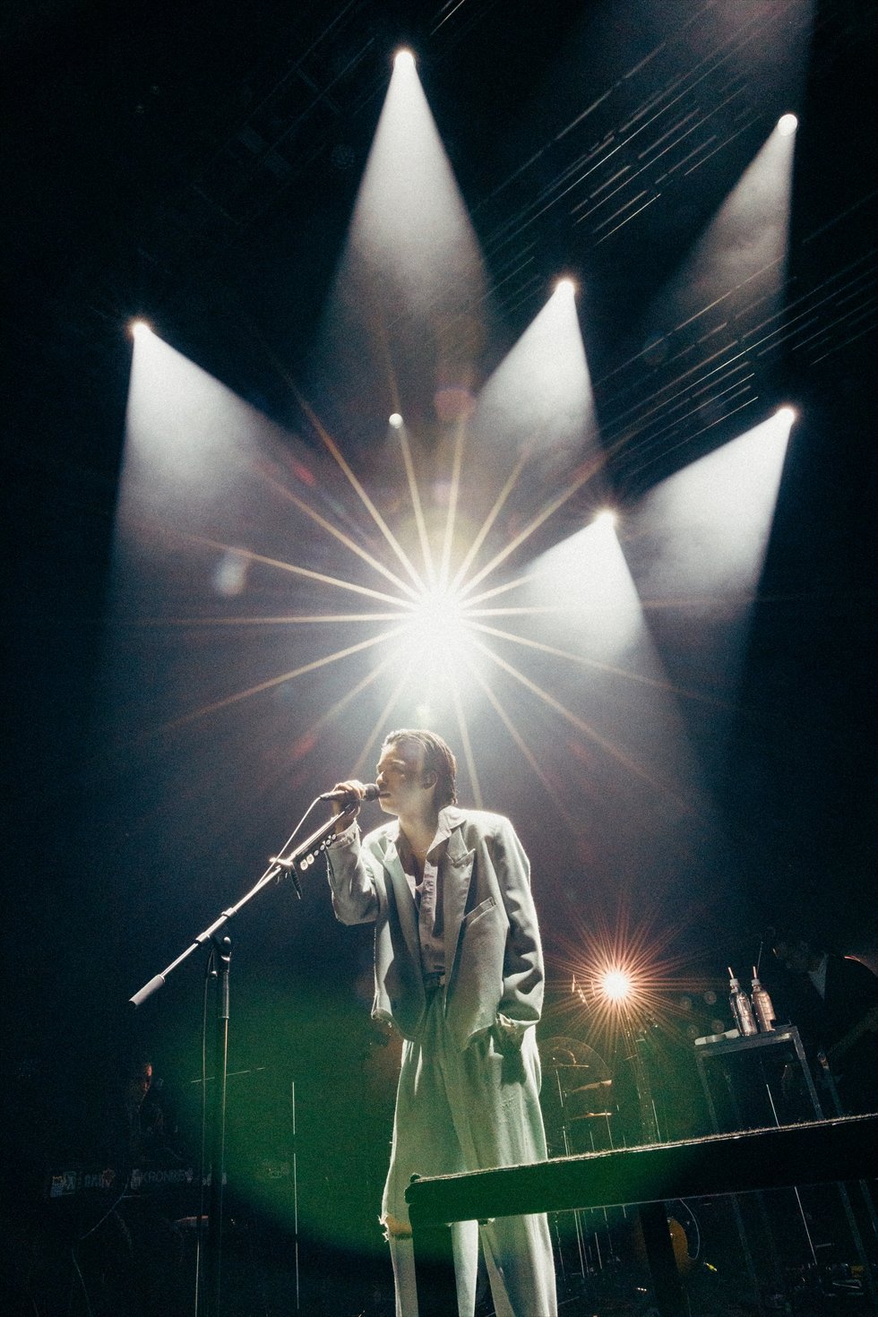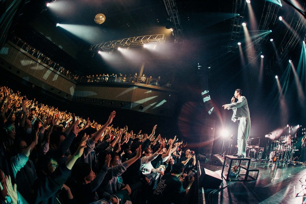 オーディエンスと目を合わせながら、ときにチャーミングな笑いを交えるほど、まさに友達に語りかけるように歌った“謳う”は、もともと友人に子どもが生まれたときに書いた曲であるが、ここでは全世代にとってのおなじないのように響き渡った。そして終盤、“≒”が放った希望の光は、どこまでも明るく照らし、永遠に消えやしないと信じさせてくれるものだった。《約束なんか果たされなくとも/もういいだろ、/結んだことに大いに意味があんだ、》という歌詞の通り、たとえ今日見た希望の光が永遠には続かなくとも、そう信じさせてくれる瞬間に意味があるのだろう。そして、最後は“雨酔い”。《僕等には まだ光がある/僅かだけど 確かにある》――そう歌いながら全員の合唱を先導するjo0jiは、これまでで最も強い光を放っていた。