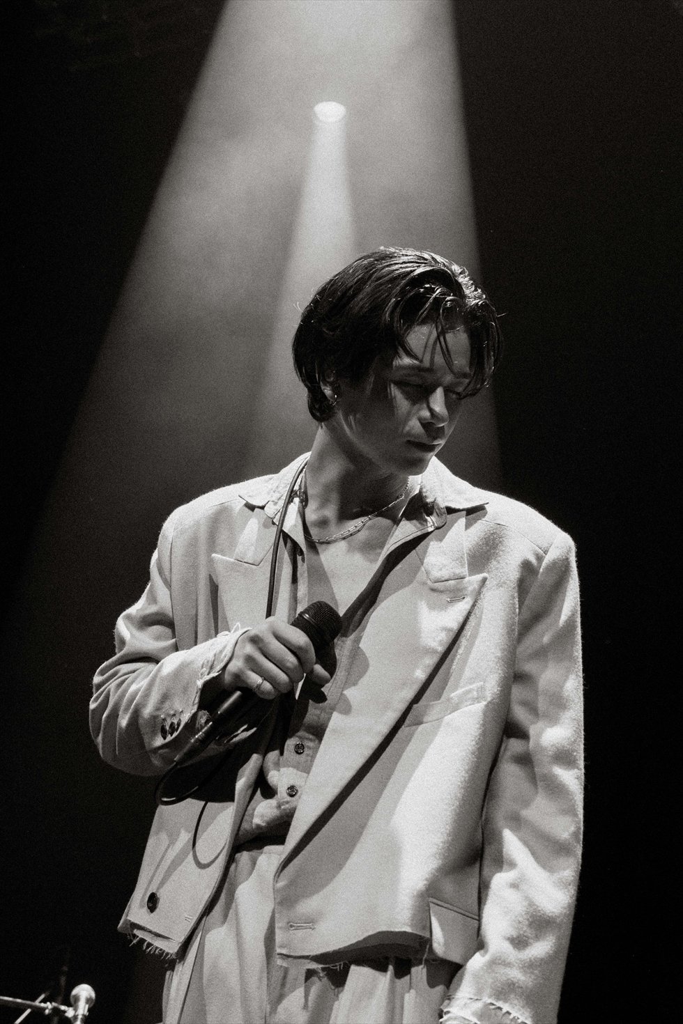 たとえ別れが訪れたとしても、人との関係性が「あえか」なものになってしまったとしても、互いを信じた時期の気持ちまでは壊さなくていい。突然、華やかな世界でプロとして音楽活動をするようになった自分は、「あえか」な存在だと自覚している――そういった思いをアルバムでは表現していたが、“よあけのうた”を世に放った今、jo0jiは《まだ僕はここにいたい、君と居たい》と諦観を捨てて高い熱量を抱きながら前を向いているように見えた。それがこの日jo0jiが放っていた、まだ見ぬ人を友達として音楽の中へと招き、自分以外の人たちも救う光の正体だった。