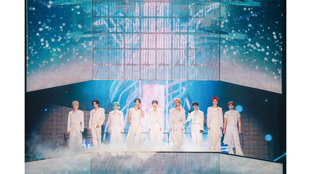デビュー前のメンバーそれぞれの道のりを辿るようなオープニング映像に続き、ライブの幕開けを飾ったのは、2023年9⽉にリリースした3RD ALBUM『EQUINOX』のタイトル曲「Venus」。JO1は幻想的な純⽩の⾐装をまとい、樹⽊の幹のようなセットから登場します。本公演のために半数のメンバーが髪⾊を⼤胆にチェンジしており、メンバーがアップで⼤型ビジョンに映し出されるたび、JAMから割れんばかりの歓声が起こりました。