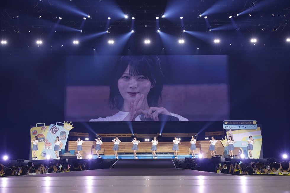 その後も先輩グループのカバーを盛り込みつつ、華やかな“空の旅”を経て南の島へ着いた≒JOY。彼女たちは『ブルーハワイレモン』などのサマーチューンを連発して会場をさわやかな空気で満たし、ラストスパートでは『体育館ディスコ』『初恋シンデレラ』などの鉄板曲を畳みかけた。そして小澤が「メンバーみんなで試行錯誤して、挑戦できたツアーだったんじゃないかなと思います!」とツアーを振り返り、今後の活動への意気込みを述べたあとは『ネバギバ!生きろ』のパフォーマンスへ。ファンに宛てたメッセージが映し出されるスクリーンを背に、メンバーは晴れやかな歌声を響かせた。