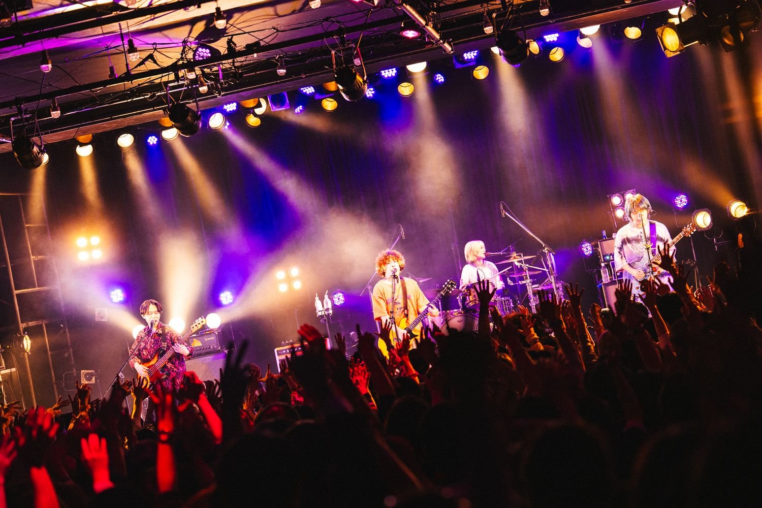サポートメンバーとして2年間ともに演奏してきたヨコイ(Gt.)と関(Dr.)だが、今日からは正式メンバーとして初めてMCにも参加。それぞれ客席に呼びかけると、ファンからは大きな声援や拍手が巻き起こった。遠藤昌巳(Ba.)が「前回の47都道府県ツアーのリベンジの意味もある」、谷口鮪(Vo./Gt.)が「おじいちゃんおばあちゃんになってもこのメンバーでやっていくと思うのでよろしくお願いします」と意気込みを述べ、ライブは後半戦へ。「初日の緊張感がすごくある。僕たち新人バンドなので」といいながら、2年の時を重ねた4人で息の合った演奏をみせた。