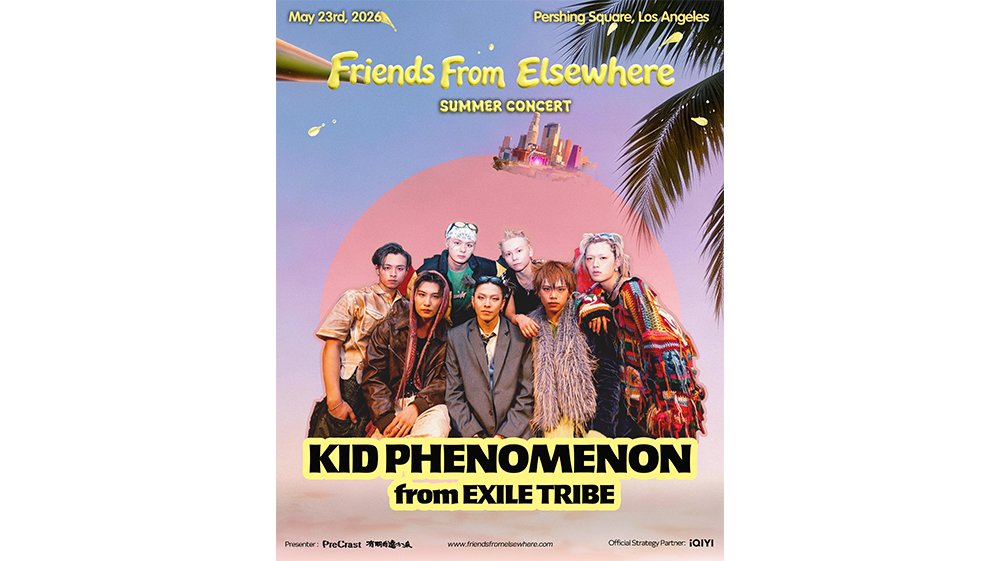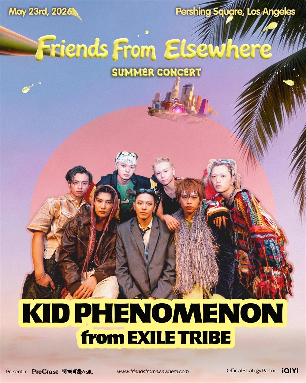 KID PHENOMENONが、2026年5月23日(土)に米・ロサンゼルスのダウンタウンにあるパーシング・スクエアで開催されるミュージックフェスティバル『Friends From Elsewhere Summer Concert』に出演することが、現地時間8日午前11時に発表された。