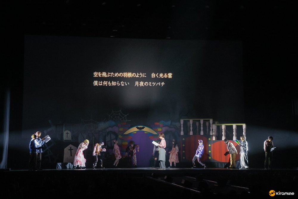 アンサンブルが演じるゾンビが、会場中を徘徊する演出や、花道で客に囲まれた中でのお芝居。さらには、ゾンビをやり過ごすときに演者がしていたアドリブでの決めポーズやマロンの演技の面白さなど、ユーモアがあって、笑いも絶えなかった『パンプキンファームの宇宙人。』。だからこそ、ストーリーの意外な展開に驚かされたり、シリアスなシーンで胸が熱くなる、あっという間の2時間だった。なお、公演のアーカイブ配信は、4月12日(日)23:59までとなっている。