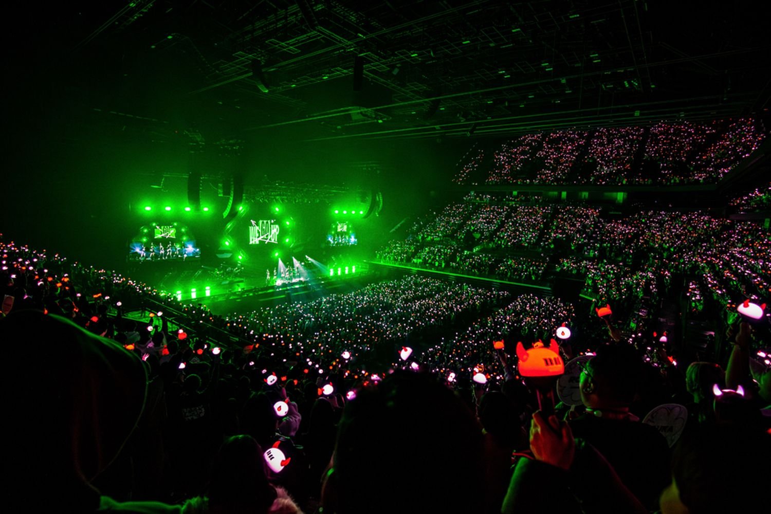 開演前に会場内で流れるBGMでBABYMONSTER「HOT SAUCE」の音量が徐々に上がると、オーディエンスも合唱し、既に会場はヒートアップ。オープニングSEに切り替わると、割れんばかりの歓声が起きた。