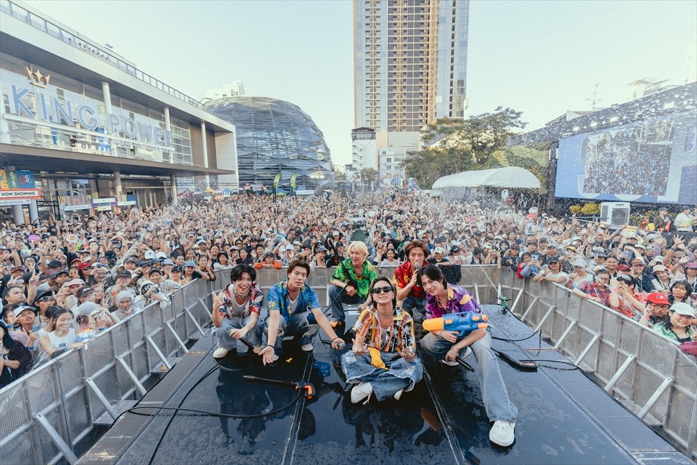 MCでは、まずはメンバー全員が「タイの新年おめでとう」とタイ語で挨拶。その後も、SUZUKIが「皆さん、濡れているのにとても綺麗です」とタイ語で歯の浮くようなセリフを口にしたり、SNSで話題のダンスを4人で披露したり、と現地の観客をそれぞれが大いに盛り上げ、タイでの経験の豊富さを感じさせる。