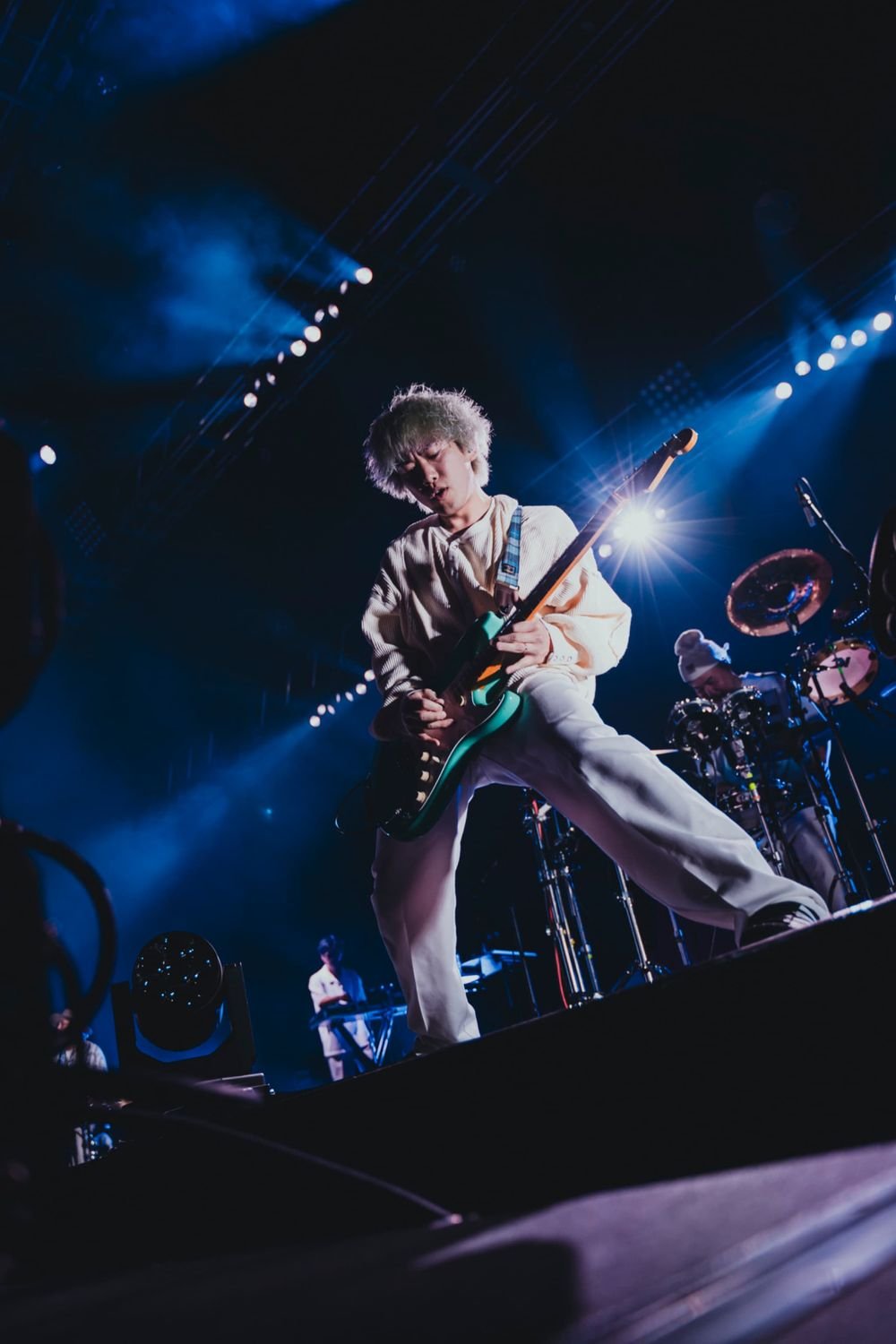 ライブ中盤、 TikTokをきっかけに世界各国で支持を集めた、総再生回数11億回を超える人気楽曲「Burning Friday Night」のメロディが流れはじめ、イントロから大合唱が巻き起こり、ステージ中央でGt.松崎とBa.山浦が背中合わせに演奏するシーンではガーデンシアターが揺れるほどフロアにいる全員が飛び跳ねる。さらに、来たる春にほのかな期待を寄せる楽曲「春はもうすぐ そこ」から「エモめの夏」「KIDS」「越冬」と、まるで春夏秋冬の移ろいを表すかのような曲順でオーティエンスを魅 了していく。「MOONLIGHT」では心地よいメロウなグルーヴで会場を包み込み、Dr.柴田とPer.ラミの攻撃的なビートからはじまるライブならではのアレンジが加えられた「はるか吠える」や「フラワー」も披露。そして、熊木と大瀧との間で、新たな命を授かったからこそ生まれた最新曲「Baby, world is yours」を演奏するなど、見るものを全く飽きさせない多彩な音楽性を提示しながらライブは進んでいった。