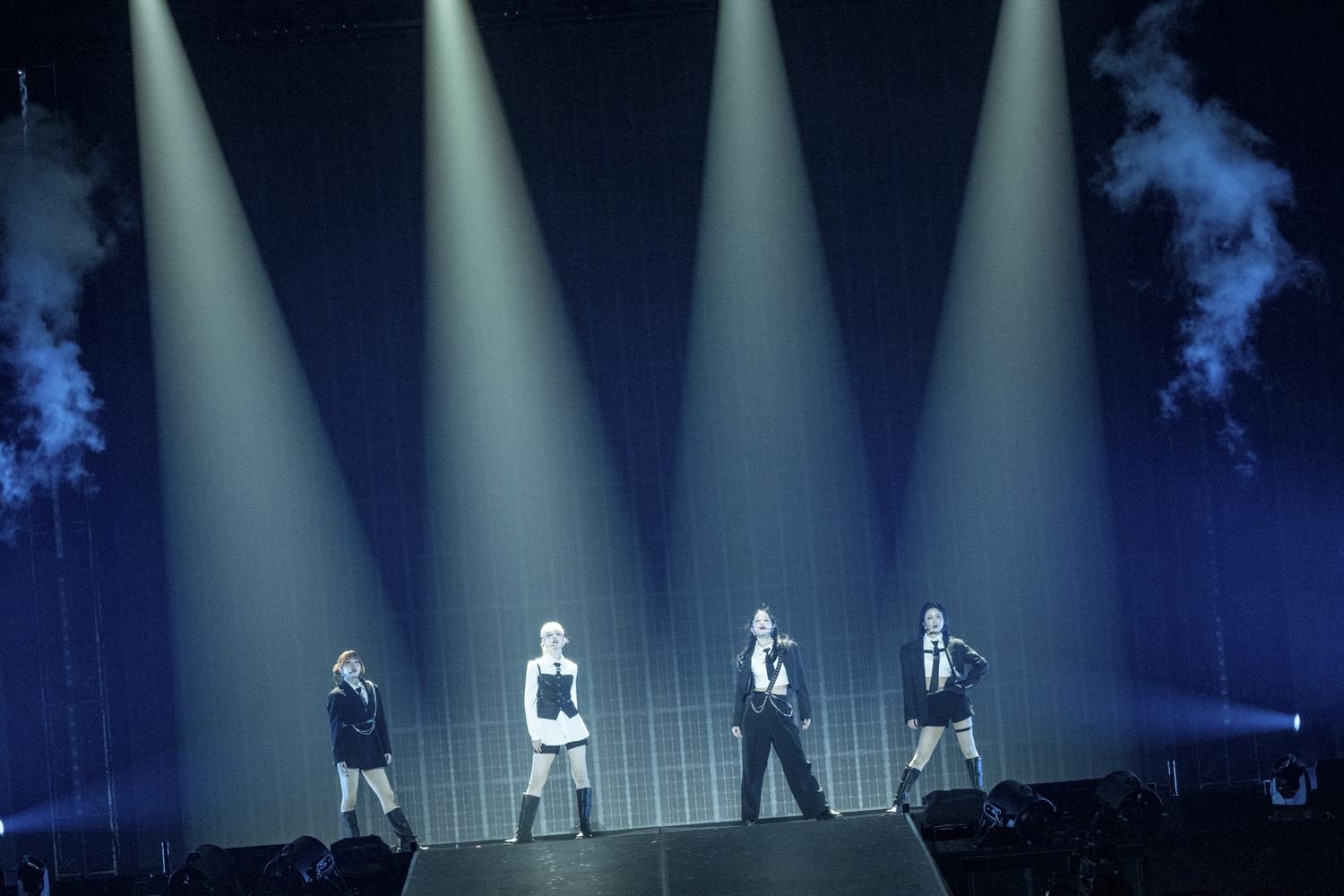 「今年1年間、特に夏は、正直このステージを走り切れるかなと思った瞬間もありました。リーダーとしてではなく1メンバーとして自分が頼りなくて、ステージに立つ資格があるのかなと思う瞬間もあって。そんなときメンバー1人ひとりが、言葉ではなく行動で『気負わなくていいよ』と示してくれたんです。そのおかげでツアーを走り切れた。本当にみんなありがとう」と頭を下げて感謝を伝えると、RINONは熱くMOMONAをハグし、KEIKOの目には涙が。
