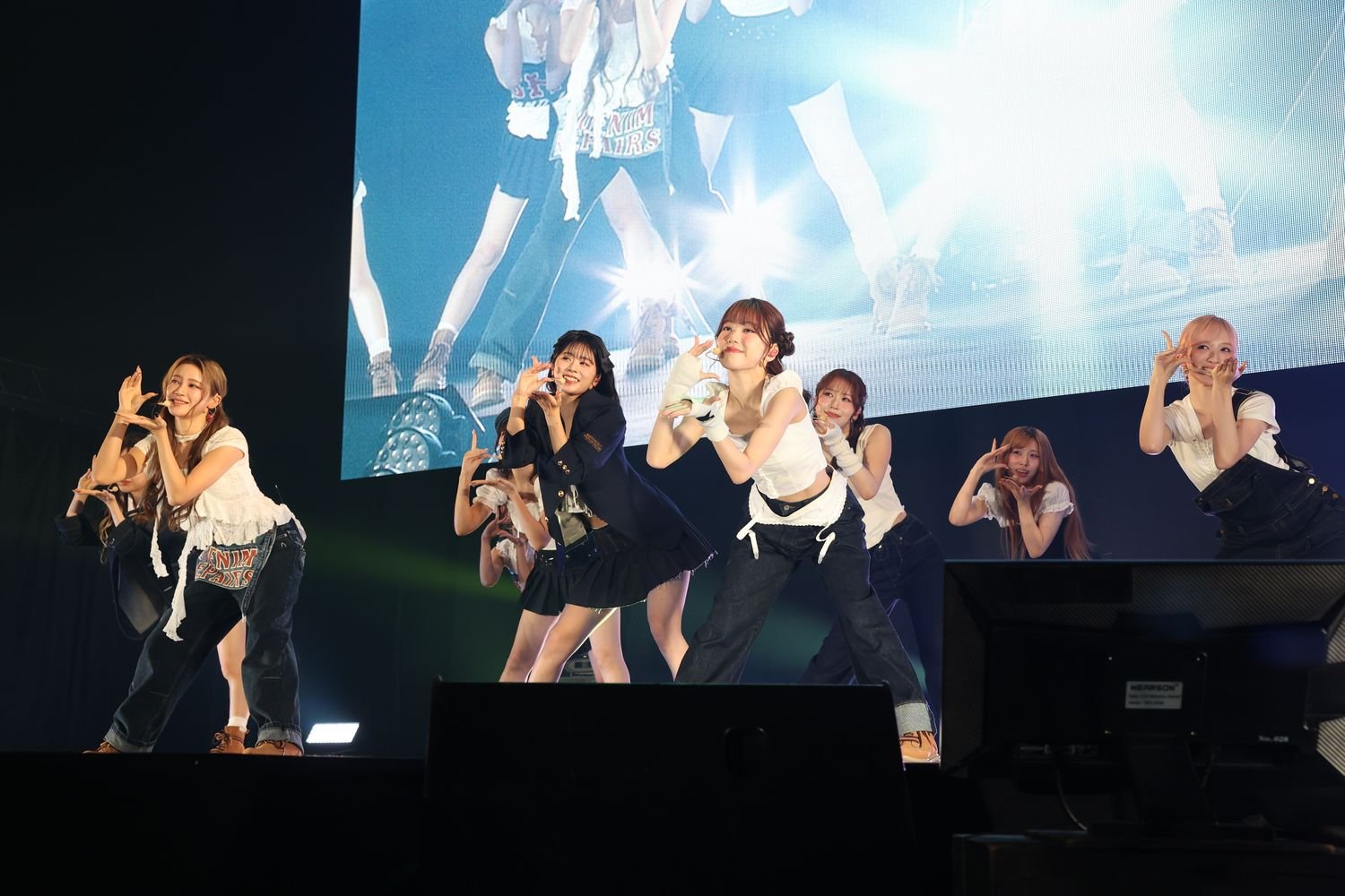 リーダーのMOMONA は 「今日はみなさんのことを ME:I の魅力で虜にできるように頑張ります!」、 SHIZUKU は 「ラスト盛り上がっていきましょう!」と元気いっぱいに挨拶。