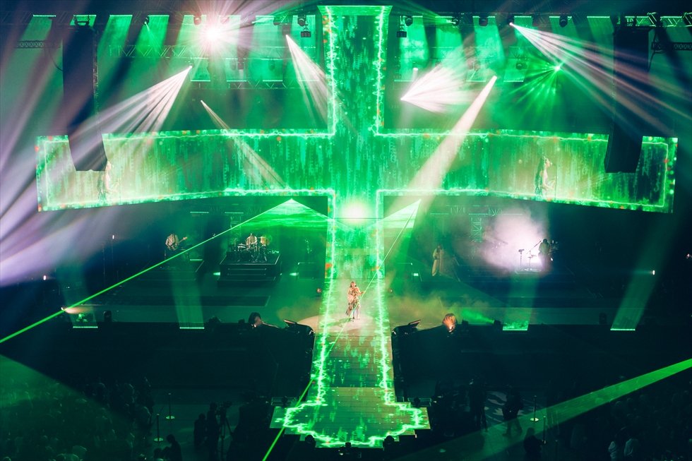 「Goddess」では、音数を抑えた静謐なサウンドの中、再登場したダンサーとともに象徴的なフォルムと動きで楽曲の世界観を描き、佇まいそのものが強い印象を残すステージが展開される。