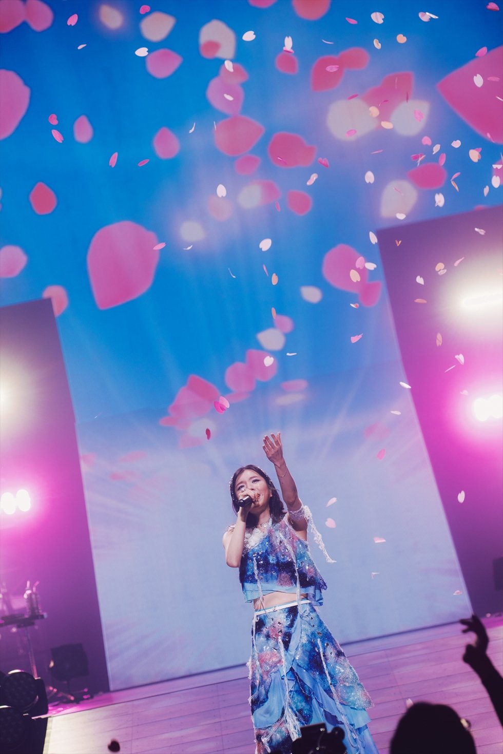 本公演では、そのテーマを体現するべく、実際に水を使用したステージ演出を導入。光と水が交錯する幻想的な空間の中で楽曲の世界観が視覚的にも描き出され、これまでにないスケール感と没入感を生み出した。