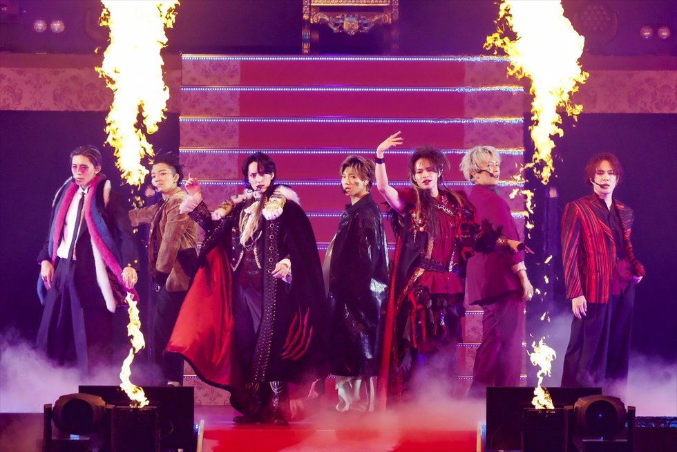 ステージ中央の扉が開くと、炎とスモークの中から現れたのは“魔王”上⽥⻯也。深紅のファーと⾚いリップをまとい、重厚なロックサウンドとラップで開幕を告げると、会場の熱気は⼀気に最⾼潮に達した。後半にはシークレットで堂本光⼀が舞台上へ登場!上⽥、川島らによる豪華なコラボステージも実現。カウントダウンライブを思わせるようなジャンルや世代を越えて交わるパフォーマンスに、 客席から⼤きな拍⼿が送られた。終盤では、出演者がスモークの中に消えていく幻想的な演出が展開され、上⽥が⽟座に戻り静かに微笑む姿で幕を閉じた。
