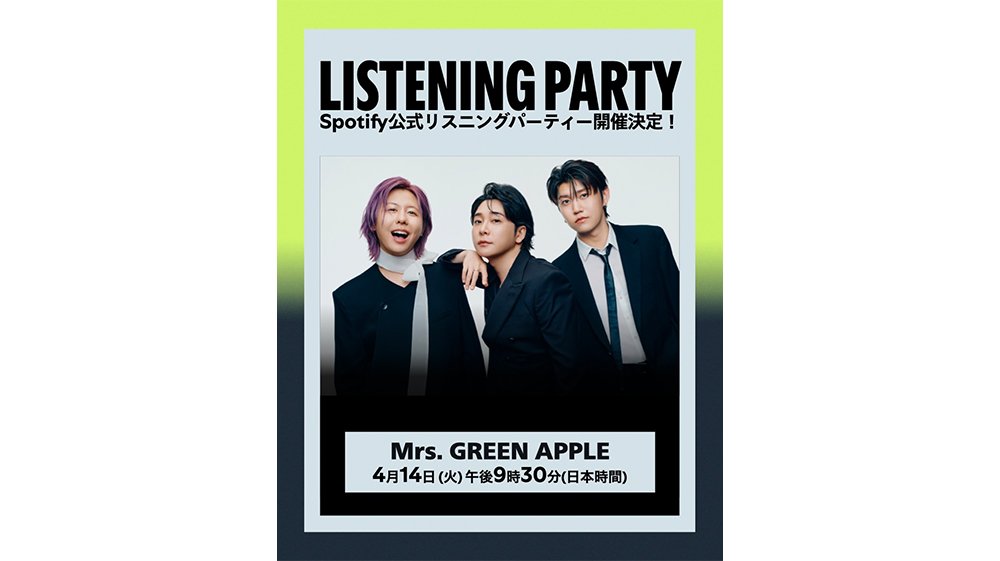 「風と町」の配信リリースを記念して、Mrs. GREEN APPLEメンバー全員参加のSpotify公式リスニングパーティーを開催することが決定!