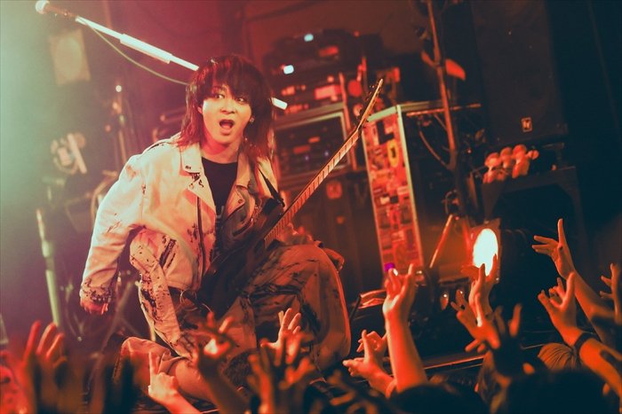 超絶技巧を駆使したドラマティックなプレイと高身長を活かしたパフォーマンスに定評があるギタリスト・優介、