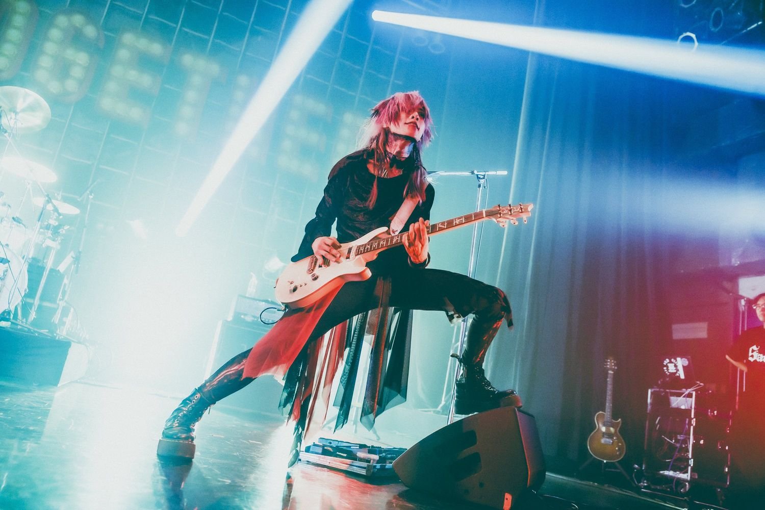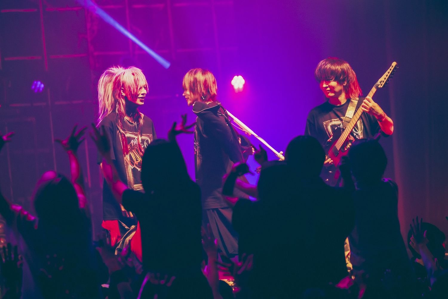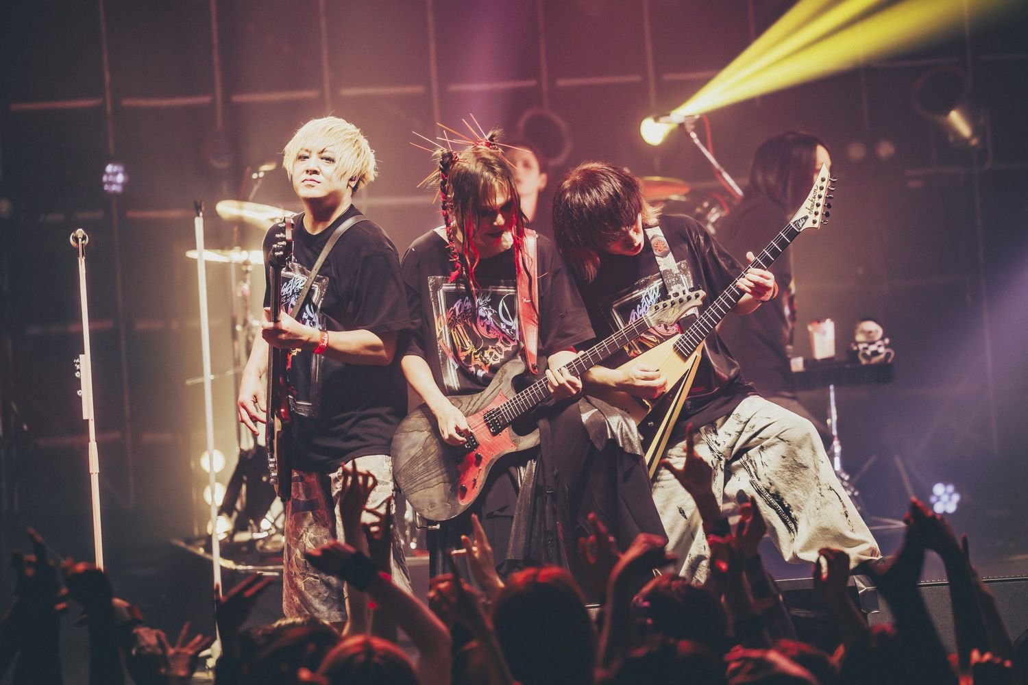 また、続く「under the chaos」ではドラマー・景が叩き出す鉄壁のリズムと、剣と美月がおりなすメタリーなギターアンサンブルに煽られるかたちで、
