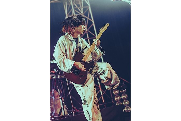 ただ、ギタリスト・雅のパフォーマンスはMUCCのミヤとは全く異なり、ベロア生地のワイパン仕様ボトムに胸元がざっくり開いた衣装を纏いながら、