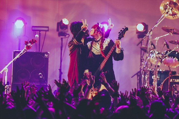 ベーシスト・YUMEも女形というよりはシナの作り方があざとい系女子のソレで、やたらとキュートさをアピっている印象だ。