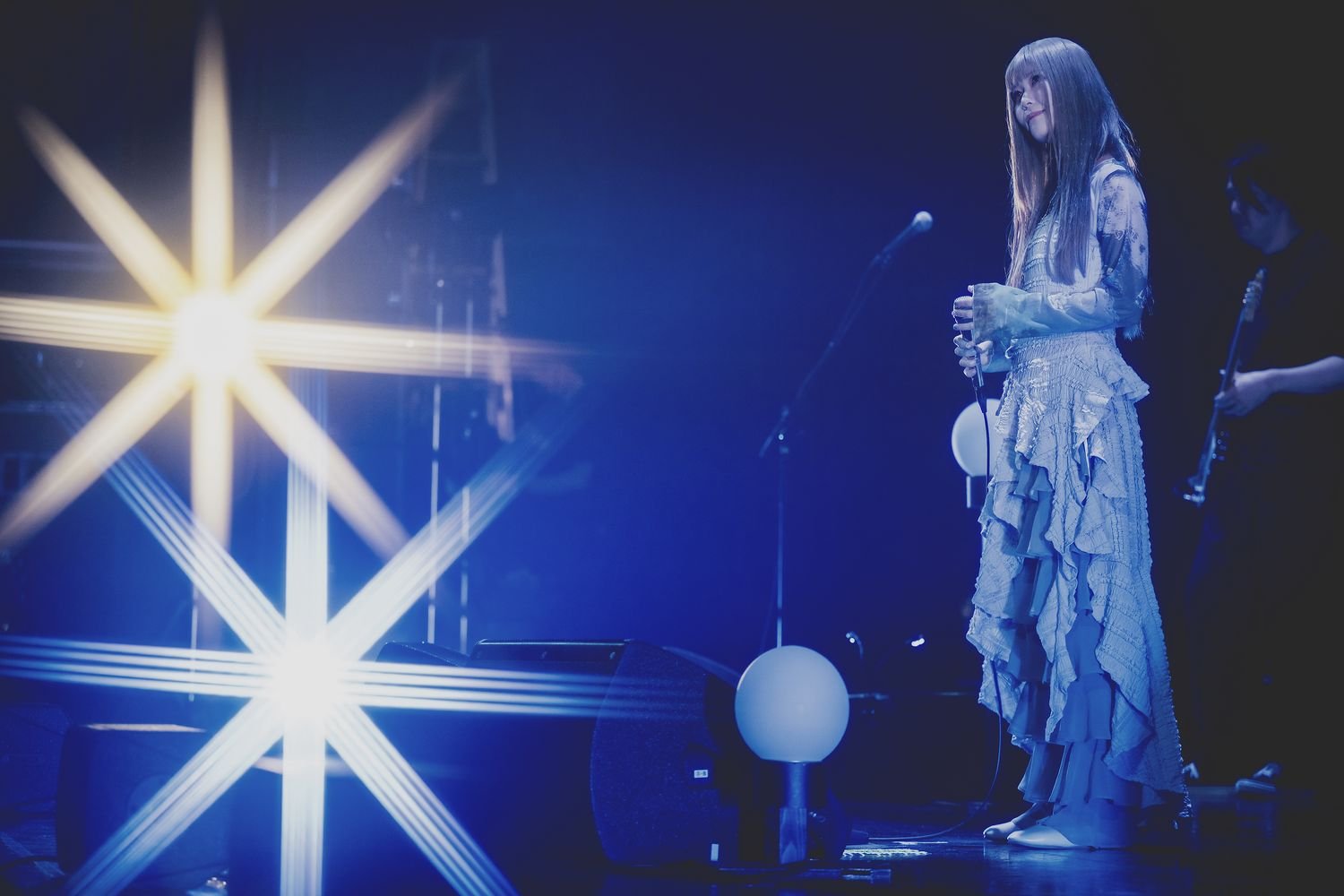 最初のMCでは「今日、この時間だけは、お仕事や学校のこと、普段のいろんなことを全部忘れて、頭の中を空っぽにして、私の歌と演奏と、二度とない空間の響きに耳を傾けて。一瞬一瞬を全力で味わうように、自由に楽しんでください」と挨拶すると、観客からは大きな拍手と歓声が上がった。そして、「私の一番最初の始まりの1曲。もう会えなくなった大切な人や家族、夢で会えたら、どんな言葉をかけようかなと思い浮かべながら聴いてください」という言葉から、2018年11月に熊川みゆ名義で初めて配信リリースされた「あの日夢を」へ。ルームランプのような淡い光の中で声を響かせた後、フロアの天井に吊るされたミラーボールに光が集まり、「人は死んだらどうなると思う?」というナレーションが流れ、今年2月にリリースした2枚目のアルバム『Celesta』の世界へと突入していった。