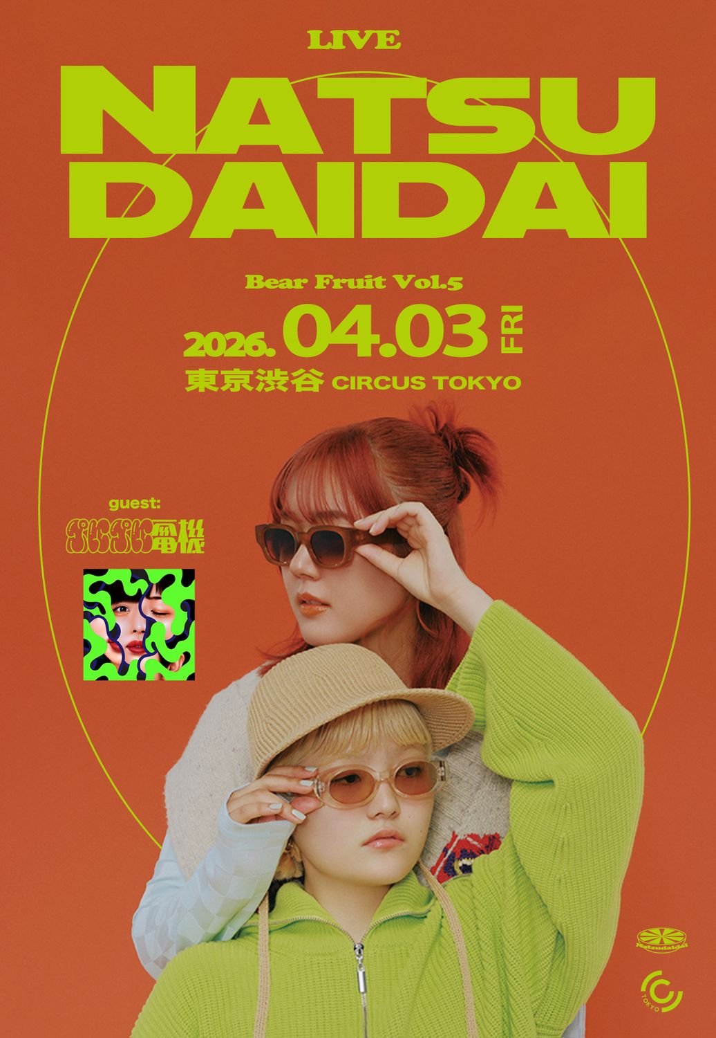 シンガーのヨウと、トラックメーカーのNanaeによるユニット「Natsudaidai(ナツダイダイ)」が、2026年4月3日(金)に、主催対バンイベント “Bear fruit” の第5弾を、東京・渋谷のCIRCUS TOKYOにて開催することを発表した。