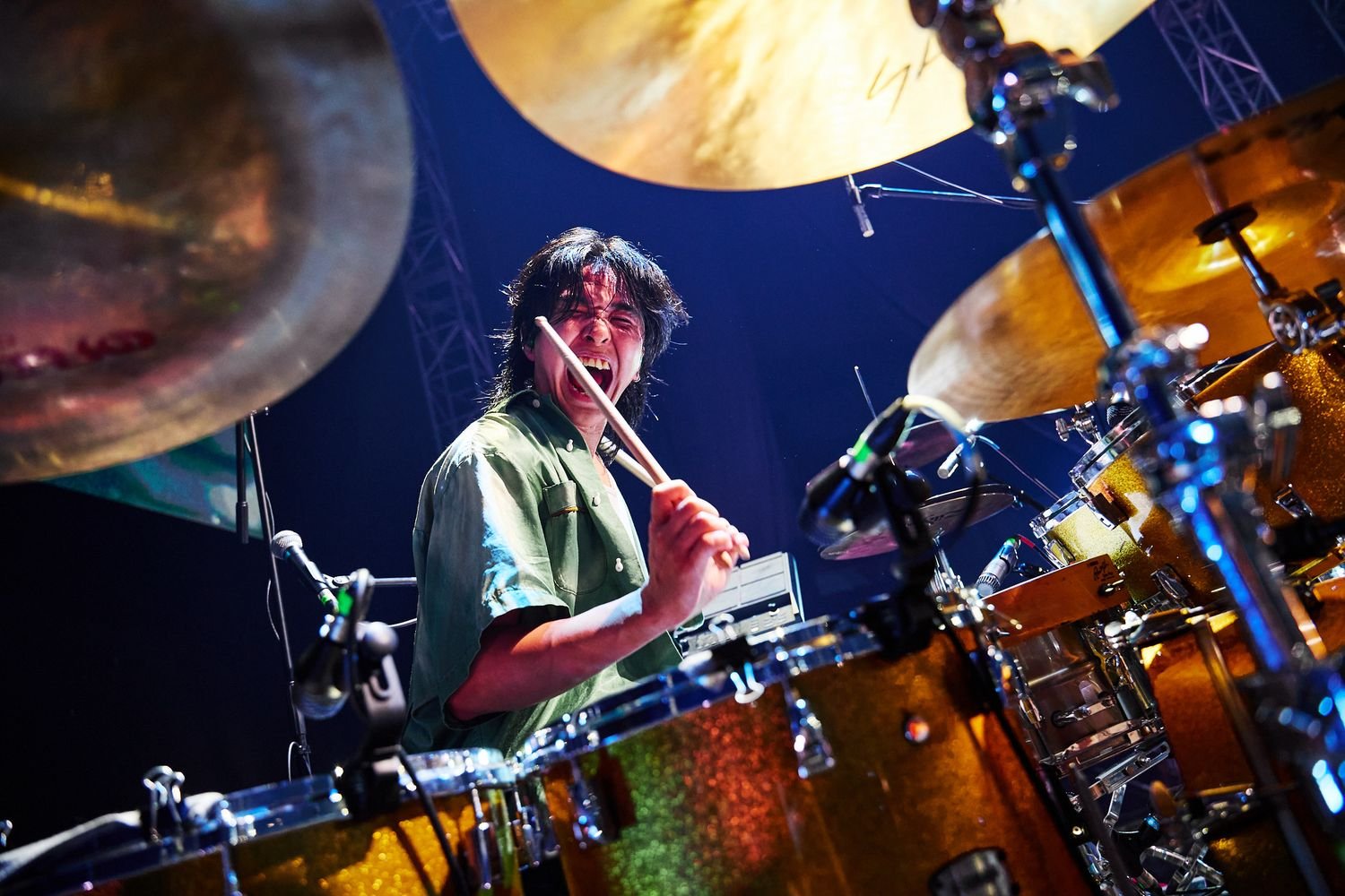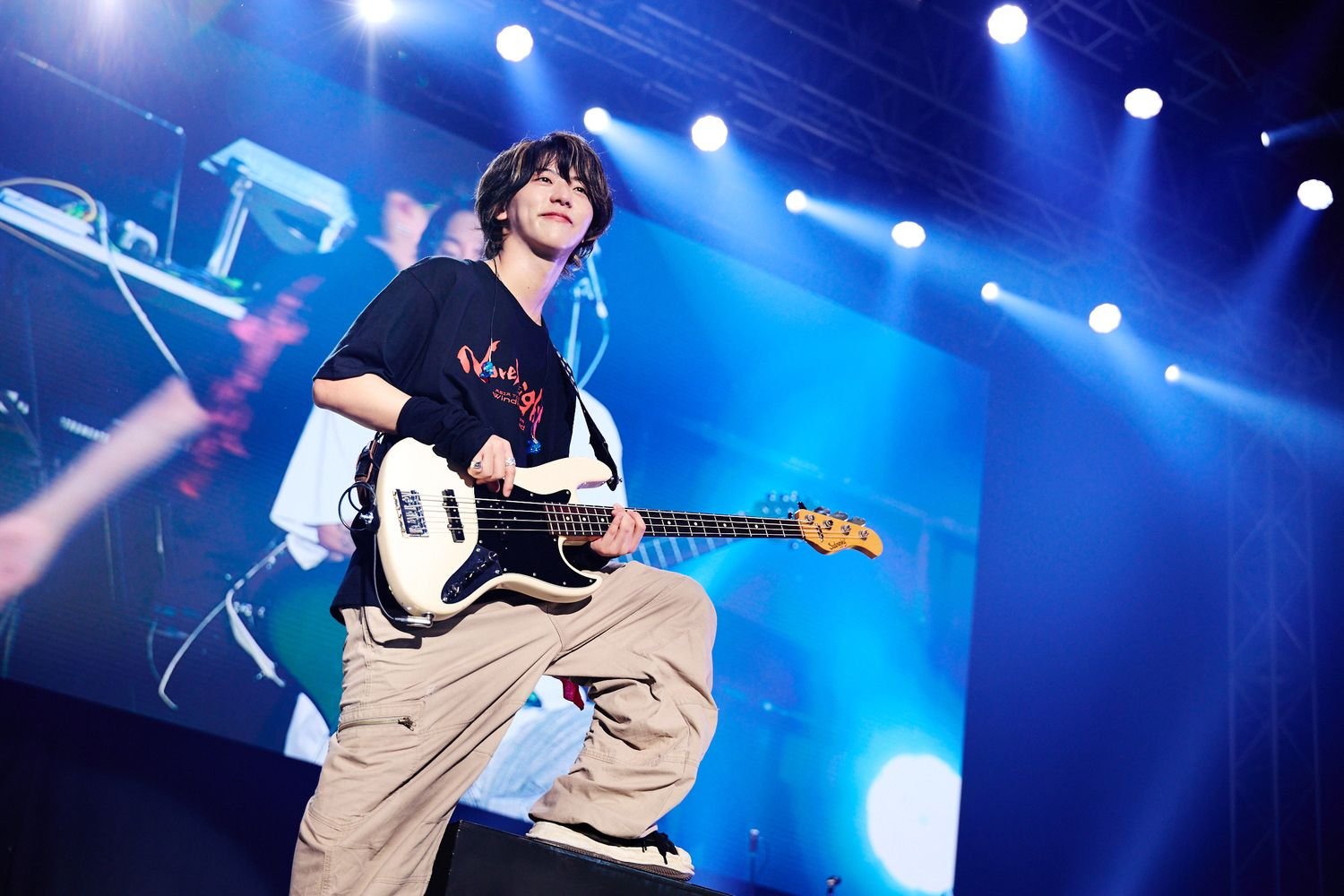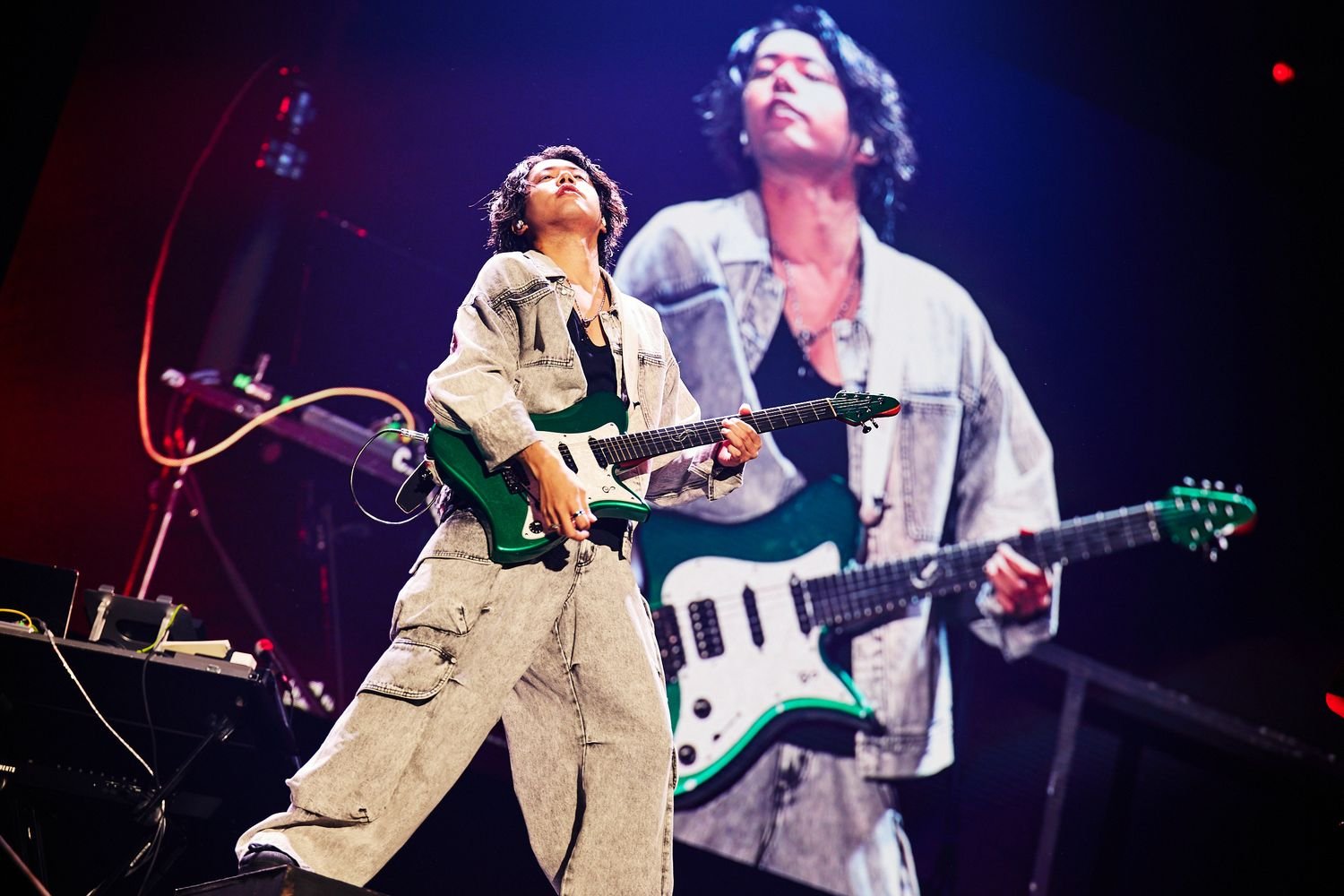 雰囲気は一変し、ねぎの強烈なドラムソロが空気を劈く。そこに圭吾のスラップベースが加わってセッションすると聡次郎のギターが唸り、海斗のギターソロが鳴く。 4人による抜群のプレイで会場を圧倒すると、真っ赤に染まったステージにサングラス姿の雄大が合流して「seeker」へ! ツインギターが暴れ、ビートが転がる怒涛のドラマティックロックナンバーで会場を燃え上がらせ、ラストは雄大の超絶ロングトーンで空間を支配すると、間髪入れずに「Empire」へと雪崩れ込み、レーザーが乱れ飛ぶド派手空間で会場を最高潮のボルテージへと吊り上げていった。
