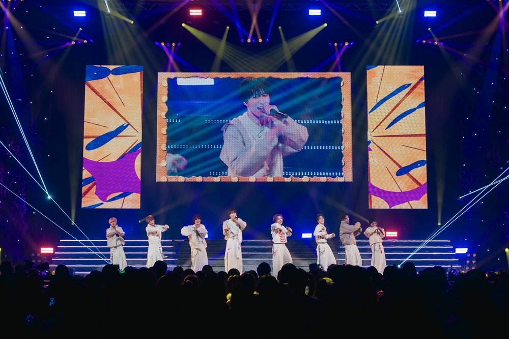 オリエンタルな『Carnival』では、メンバーがマントを羽織った状態で、アリーナ、2階、3階など客席にバラバラに登場し近い距離で楽曲を浴びせるように歌いながらステージに戻ると、8人が一列になりマントを翻しながら妖しく見せ、アウトロでは炎を浴びながら荒々しくダンスパフォーマンスを見せたあと、ドラマティックなイントロから始まる『prism』ではシリアスに、揃えたダンスで曲の世界を伝えていく。叫ぶような西島蓮汰の歌声、囁くような太田の優しい歌声、そして破壊力のある強い芯を持つ高橋わたるの歌声など、それぞれの声の良さが進化し、しっかりと伝わっていく。ライブごとにそれぞれが成長していく姿を感じられるのは、当たり前のようで当たり前ではないこと。そこにはしっかりと努力が刻まれていた。