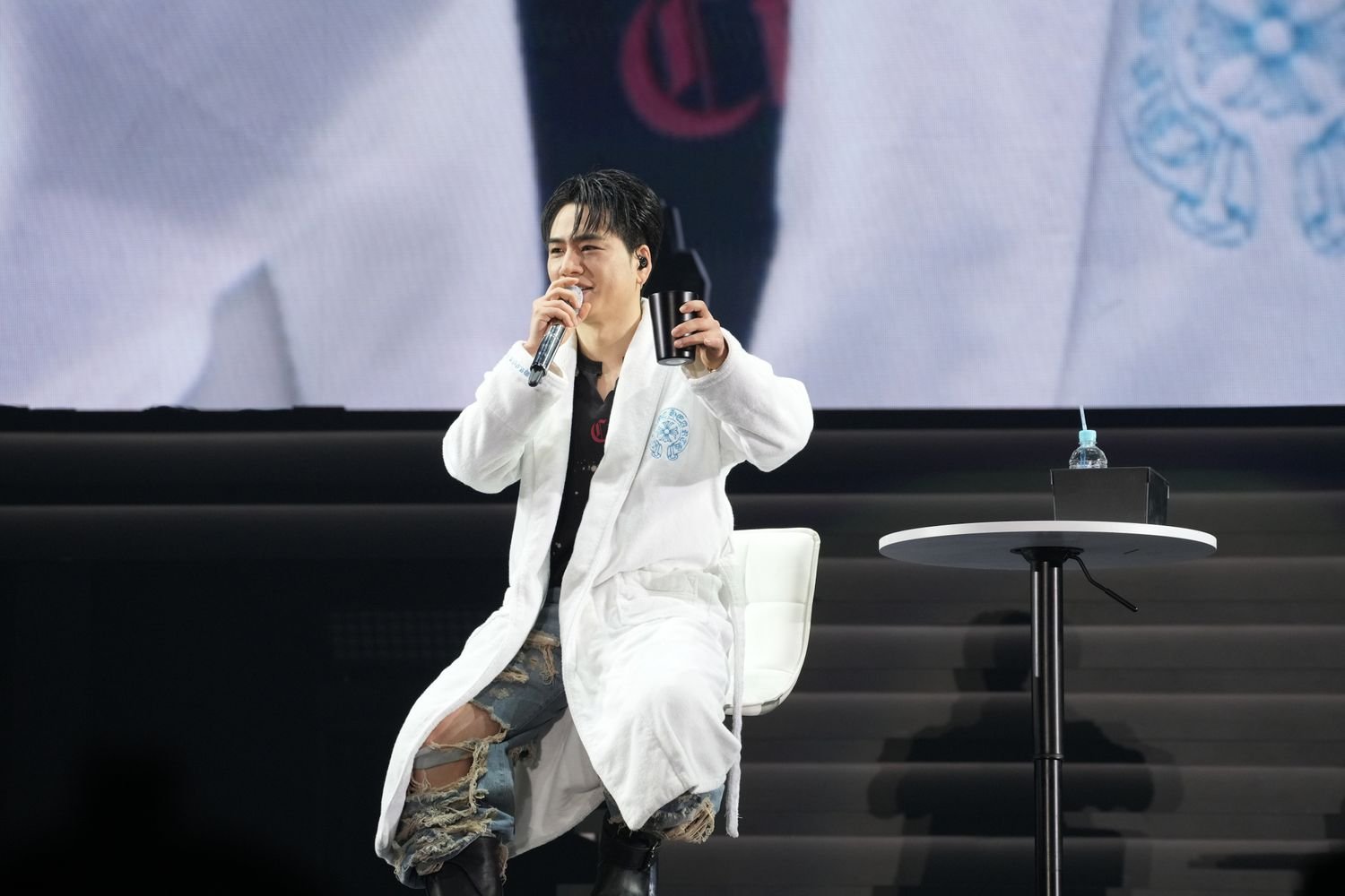 休憩後のAFTER PARTYには、バスローブ姿のØMIがステージ上に登場した。白色のイスに腰掛け、客席に「乾杯!」とグラスを向け、MATEへのお知らせとして、自身初となるソロFC イベントツアー『ØMI MOON NIGHT 2026 “Ø to 3”』を7月から開催することを発表。フランクな情報解禁に対して客席が一気に沸く。全国10都市で「リラックスした形で皆さんとコミュニケーションをとりたい」と説明した。AFTER PARTYはそこからMATEとのQ&Aコーナーに移り、花道に移動したØMIが客席から直接質問を募る時間も設けられた。そしてお楽しみのプレゼントコーナーの抽選を終え、イスに座る歌唱スタイルで心温まるラストナンバー「Love Letter」を披露。ØMIが描いた特別な3日間が、ソロプロジェクト「INFINITY MOON」をさらなるPHASEへと進める。